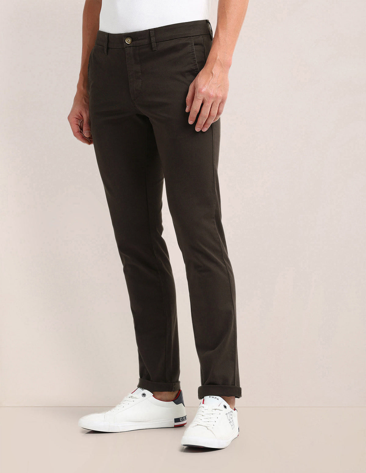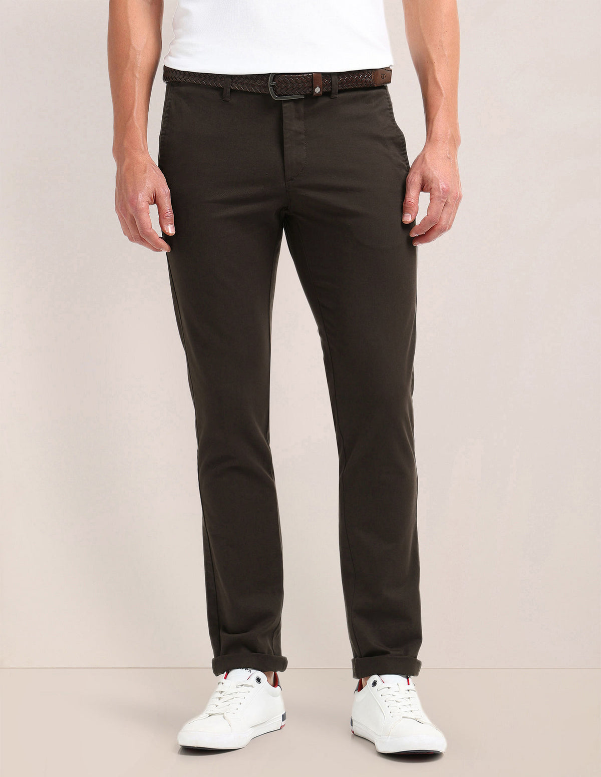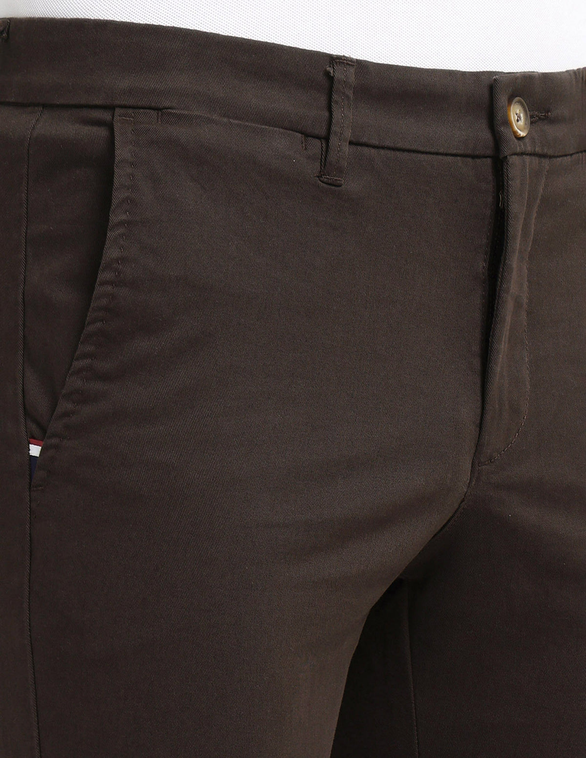 | Mid-rise waist | Button and zip fly closure | Four pockets | Flat front | Solid pattern | Brand Fit: Denver | Fit Mapping: Slim fit |