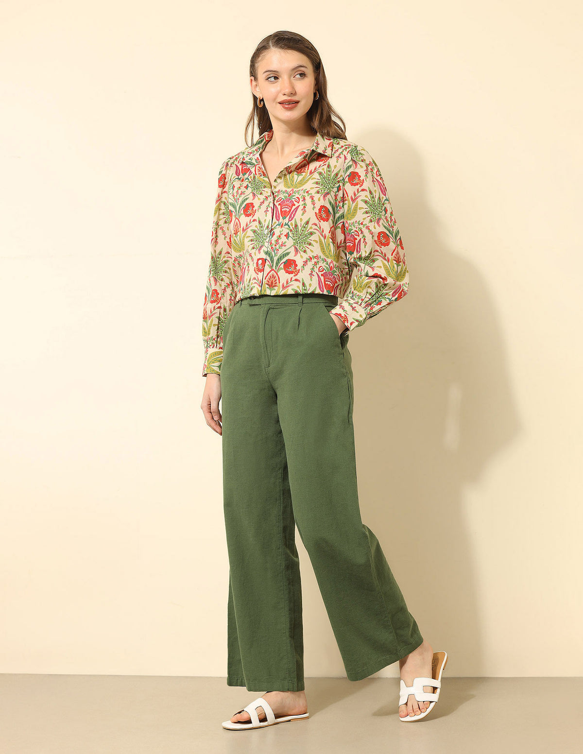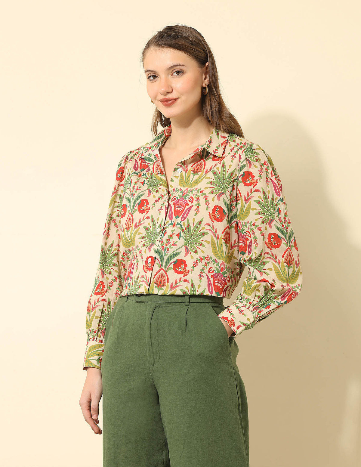 | Spread collar | Full button placket | Long sleeves with barrel cuffs | Curved hemline | Floral printed pattern | Twill weave | Regular fit |