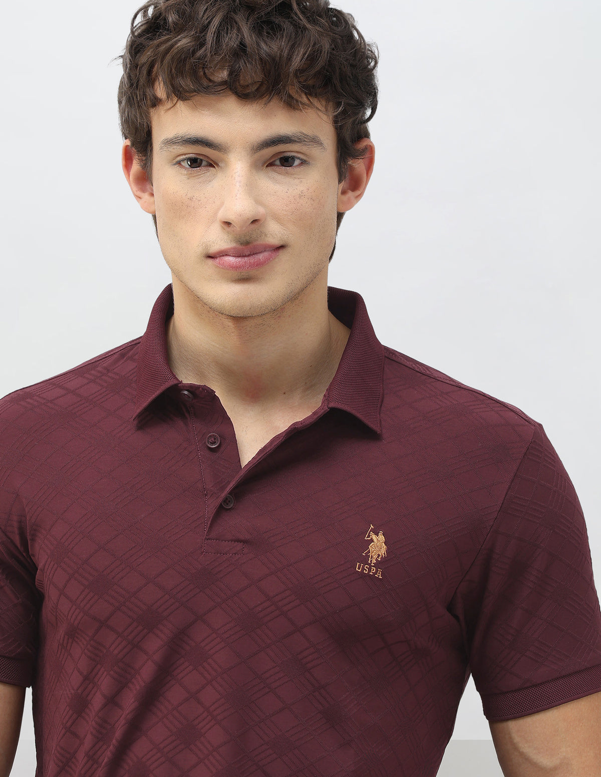 Geometric Patterned Knit Slim Fit Polo Shirt