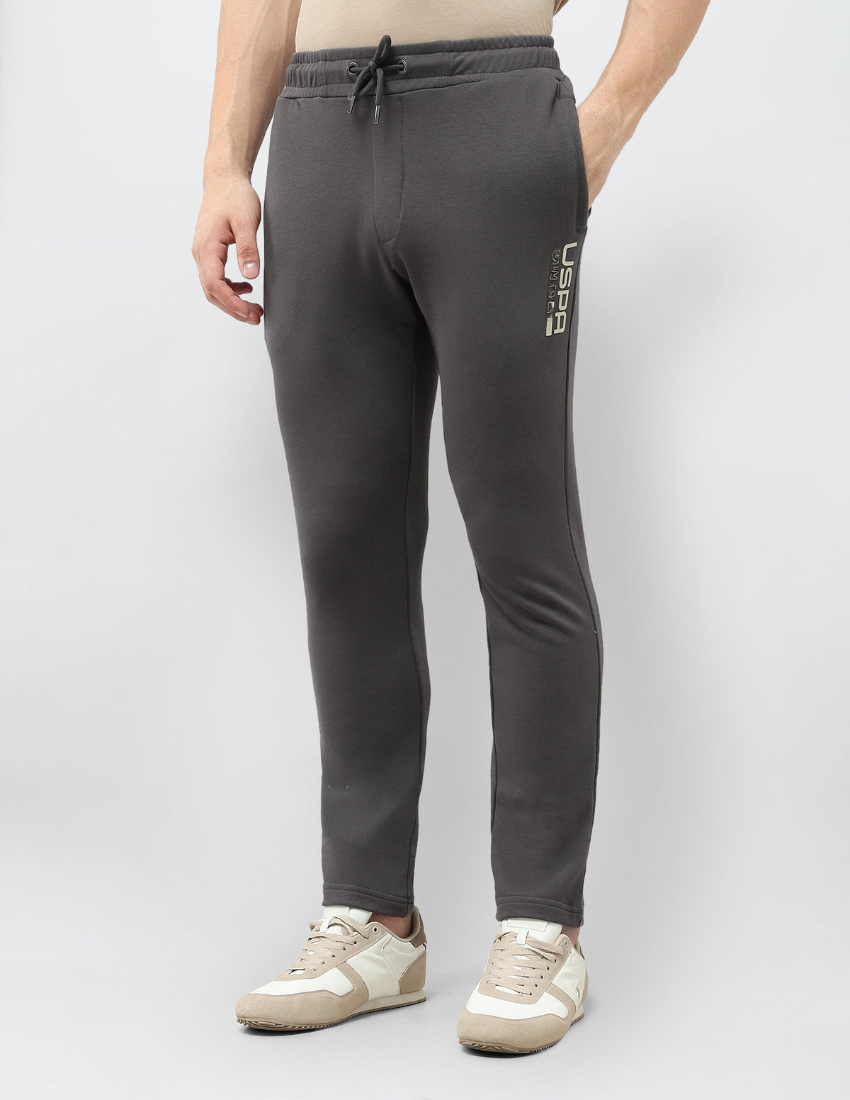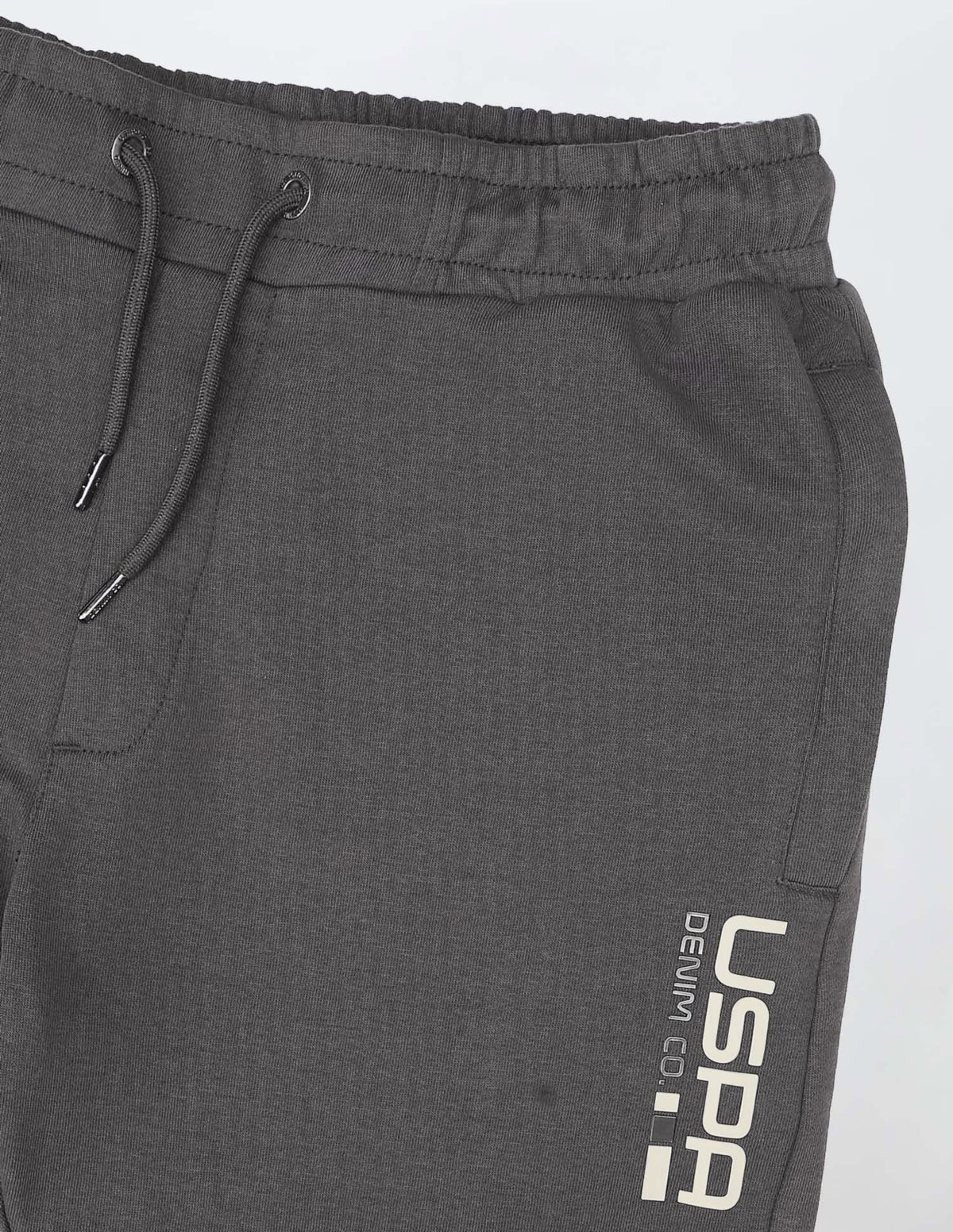 - Logo at left leg