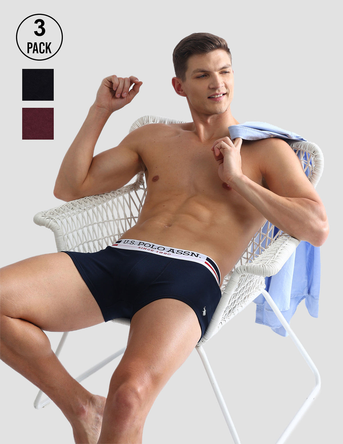 | Pack of 3: | Mid-rise sits comfortably at your waist | Soft stretch elasticised waistband with branding | Double-layered pouch provides enhanced support | Full front and rear coverage ensures easy movement | Elastane ribbed binding at hems for better fit | Solid pattern that can be paired with anything | High stretch ribbed knit construction ensures the material is lightweight and durable | Country Of Origin - India
