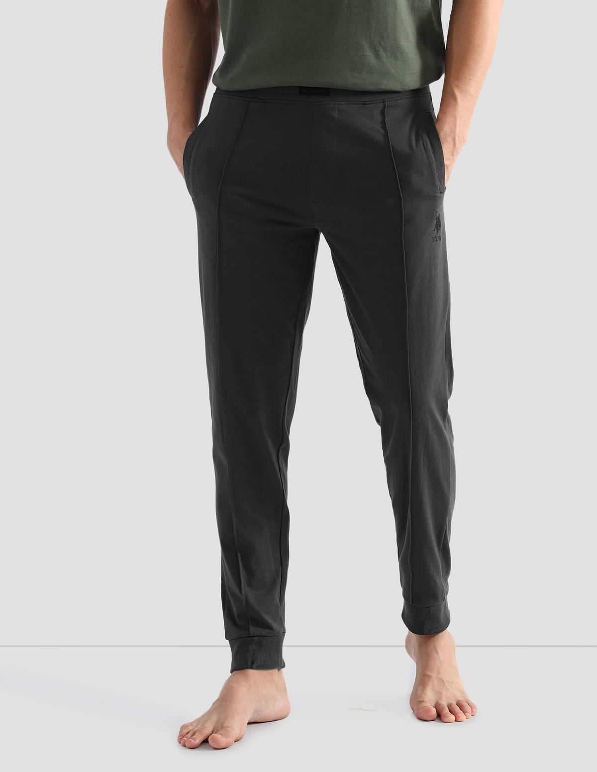 | Pack Of 1: | Mid-rise sits comfortably at your waist | Elasticized drawcord for better fastening | Dual side zipped pocket and one back patch pocket to store your essentials | Stretchable ankle rib for comfort | Stretch at knee and front panel for ease of movement | Lightweight fabric for lounge comfortable | Solid pattern with branding on thigh | Knitted construction ensures the material is lightweight and stretchable | Comfort fit | Country Of Origin - India