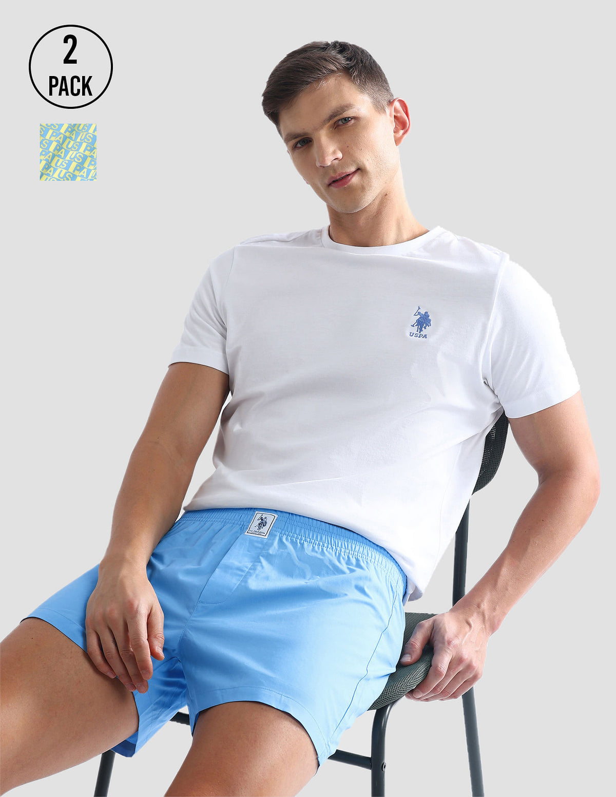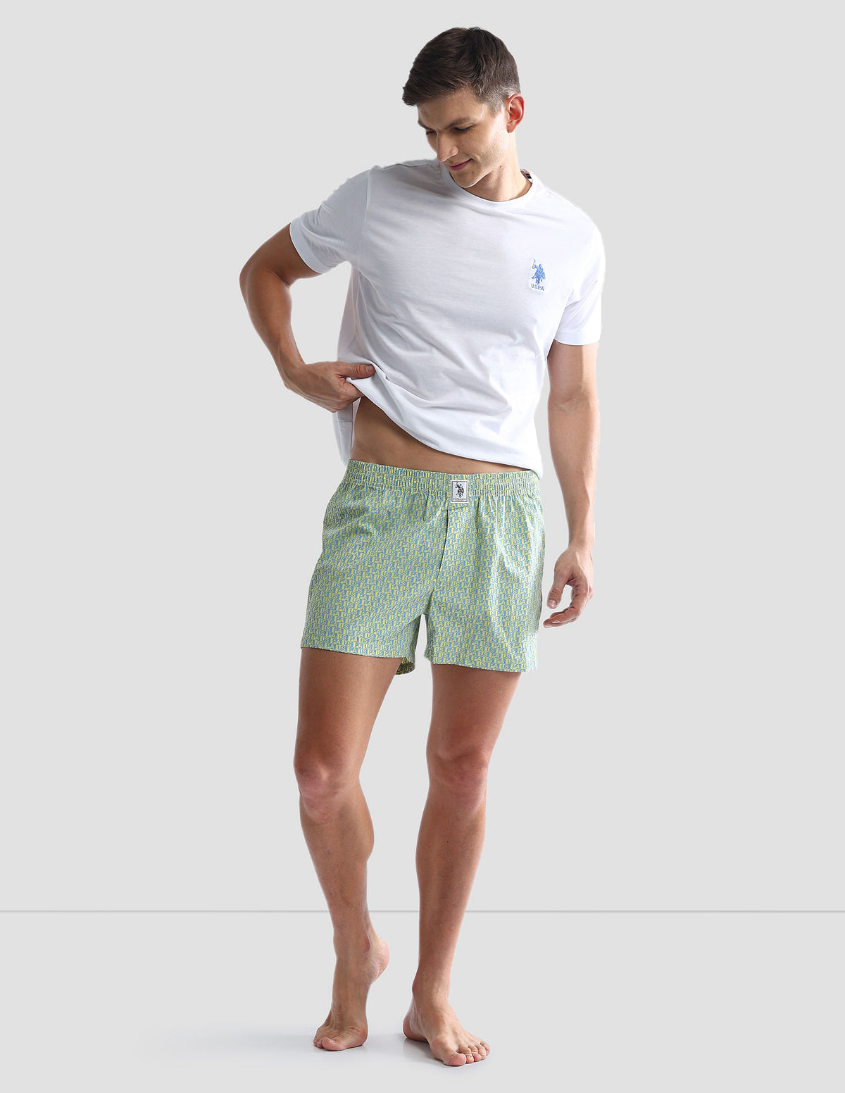 | Pack of 2: | Mid-rise waist sits comfortably at your waist | Soft stretch elasticised waistband with drawcord fastening | Signature embroidered logo at waistband | Tagless for irritation-free wear | Crafted from lightweight, soft and durable cotton fabric for all-day wear | Shorter length that can be worn under pants | One solid and one with a brand printed pattern for a versatile look | Woven for comfort and easy body movement | Comfort fit perfect for regular use | Country Of Origin - India