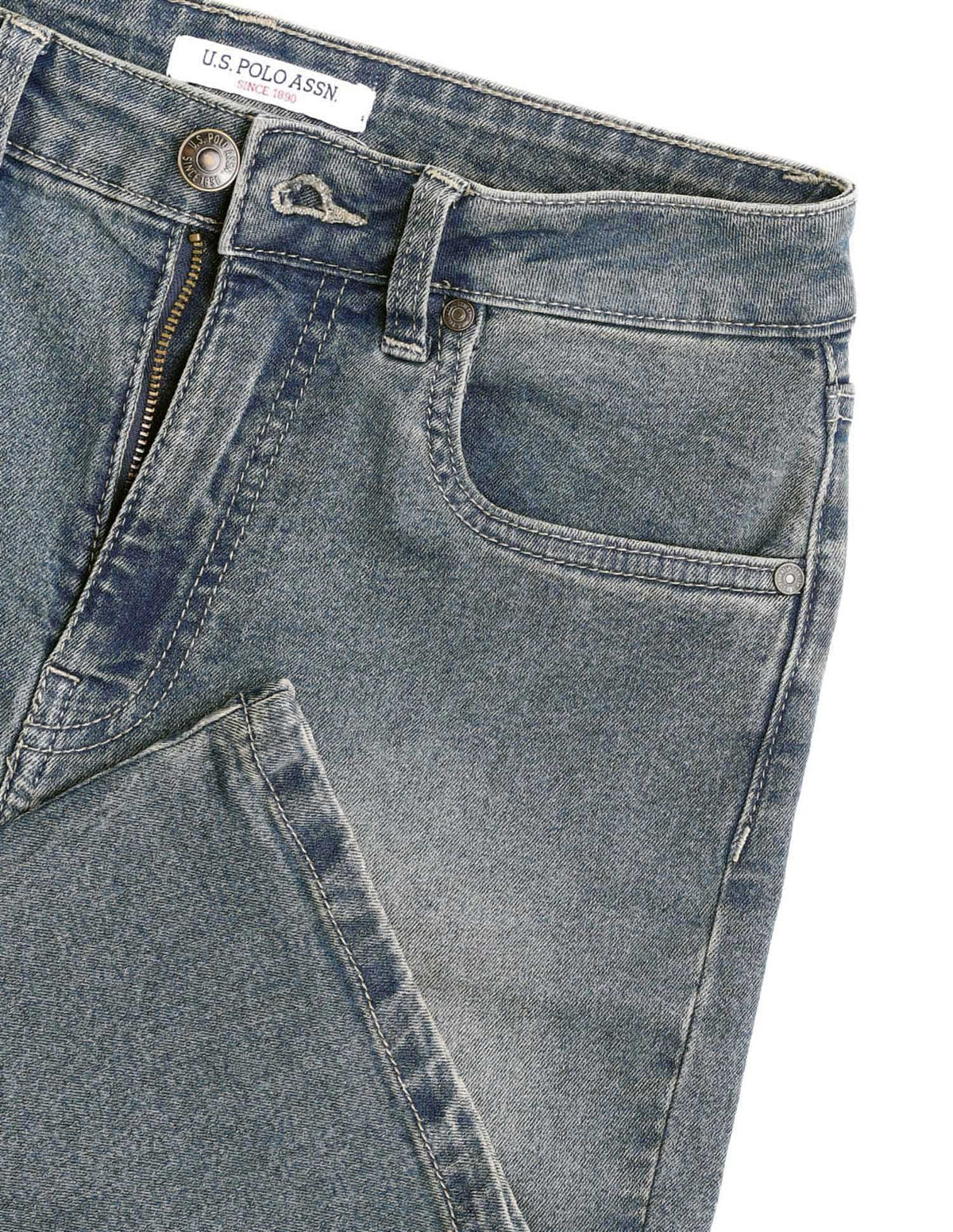 | High-rise waist | Button and zip fly closure | Five pockets | Stonewash | Denim weave | Extreme flare fit |