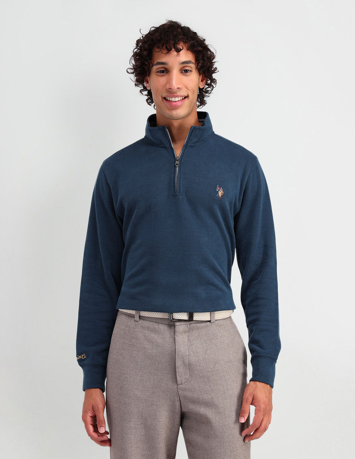 | High neck | Logo at chest | Short zipper closure | Long sleeves | Ribbed sleeve hems and hemline | Solid pattern | Knitted | Regular fit |