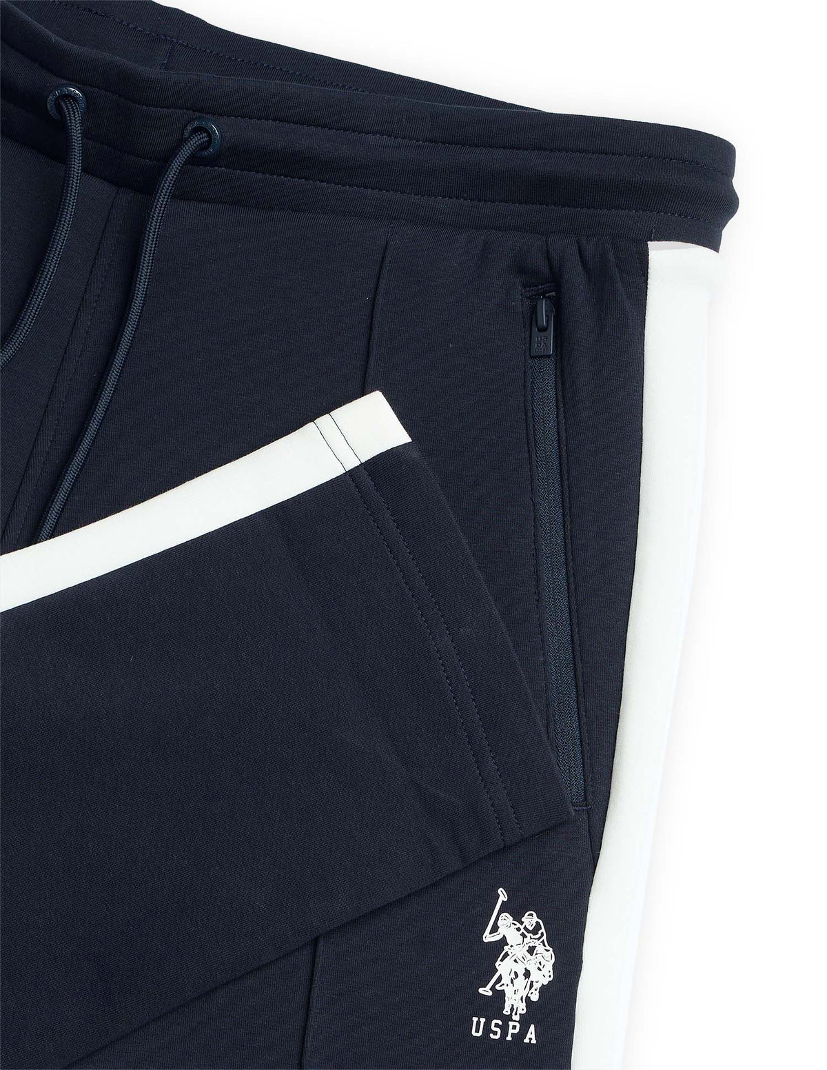 - Logo at left leg