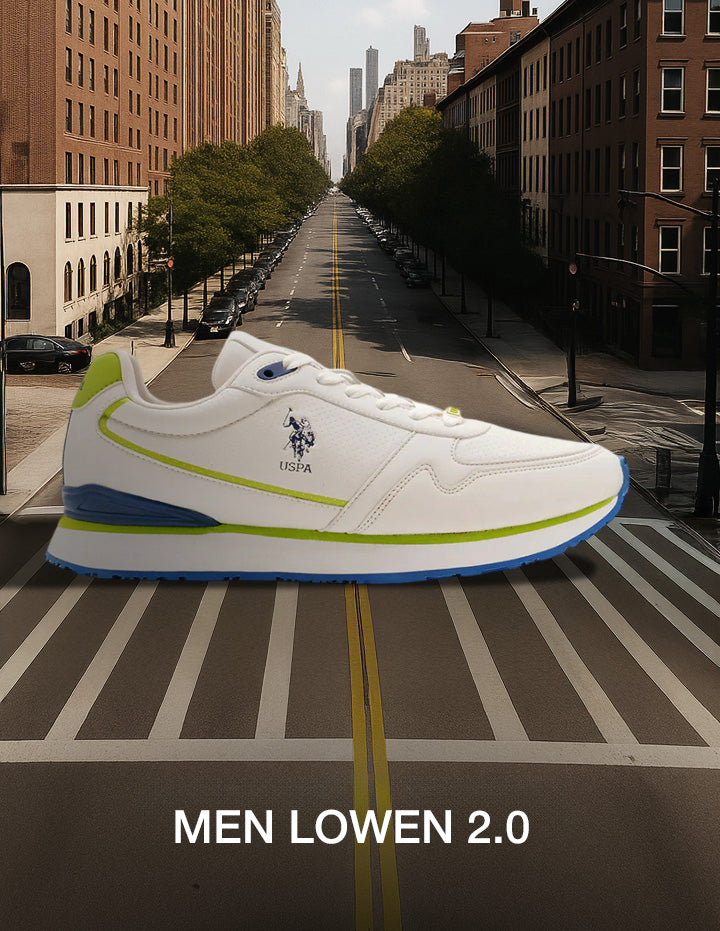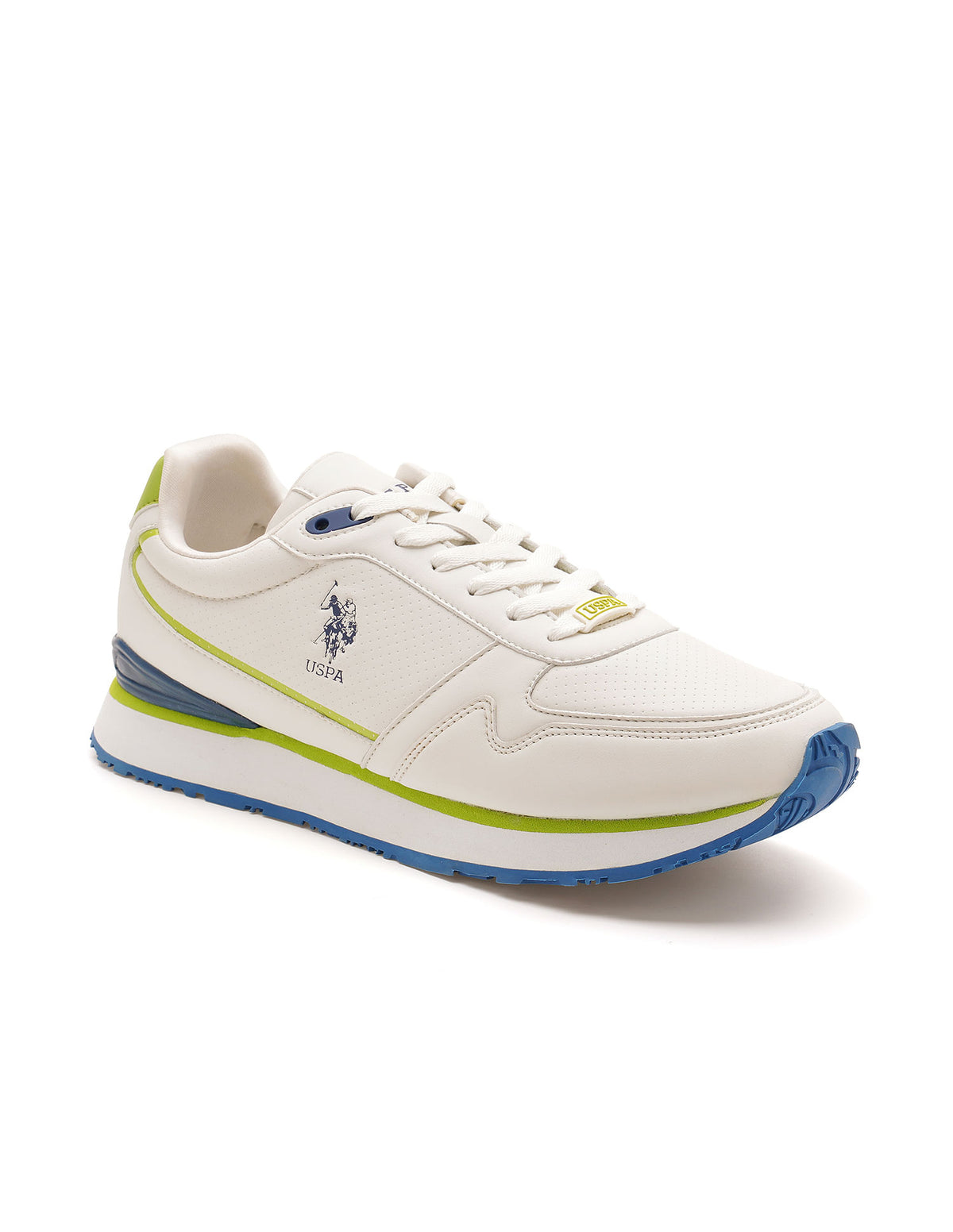 | Round toe | Central lacing | Panelled upper with logo | Padded top line | Reinforced heel counter | Cushioned insole | Textured outsole | Solid pattern |