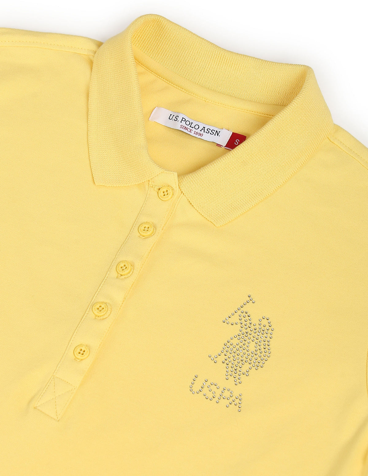 Story: Add subtle style to your classic outfit with this polo that comes with a short button placket and an logo at the chest