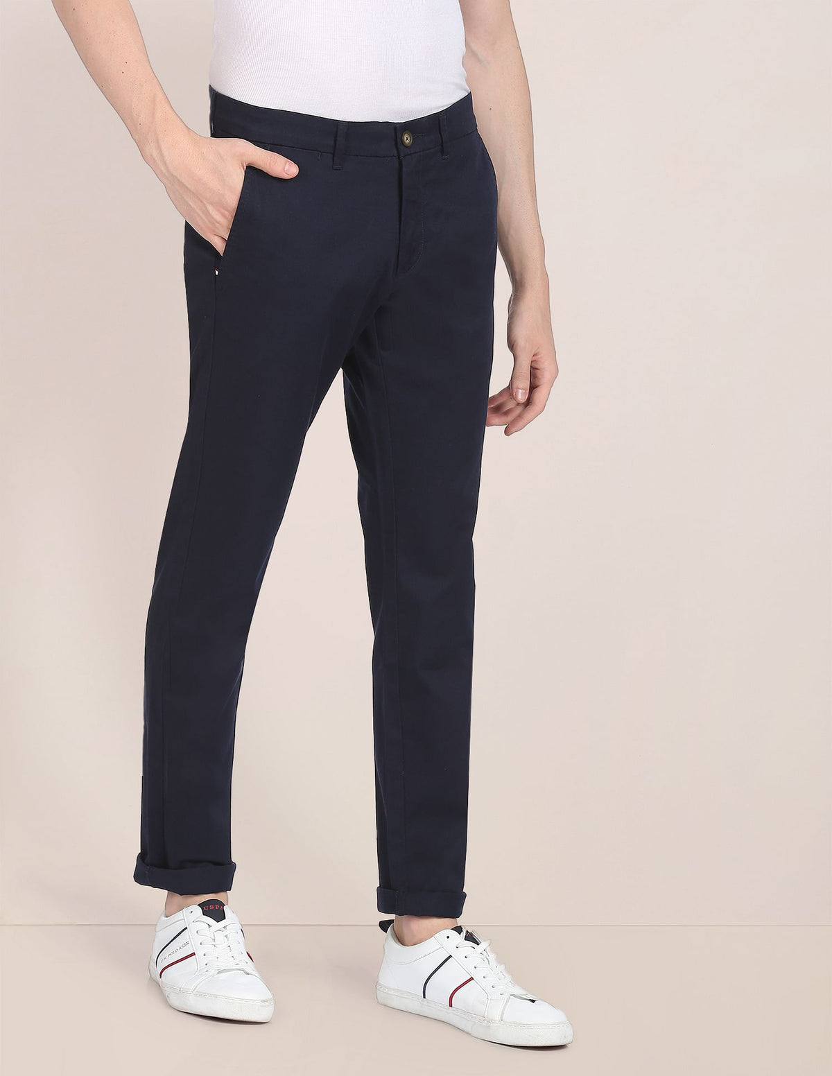 Story: Inject a cool flair to your bottom wear rotation with these twill chinos from the Stretch collection that are woven from cotton stretch fabric.