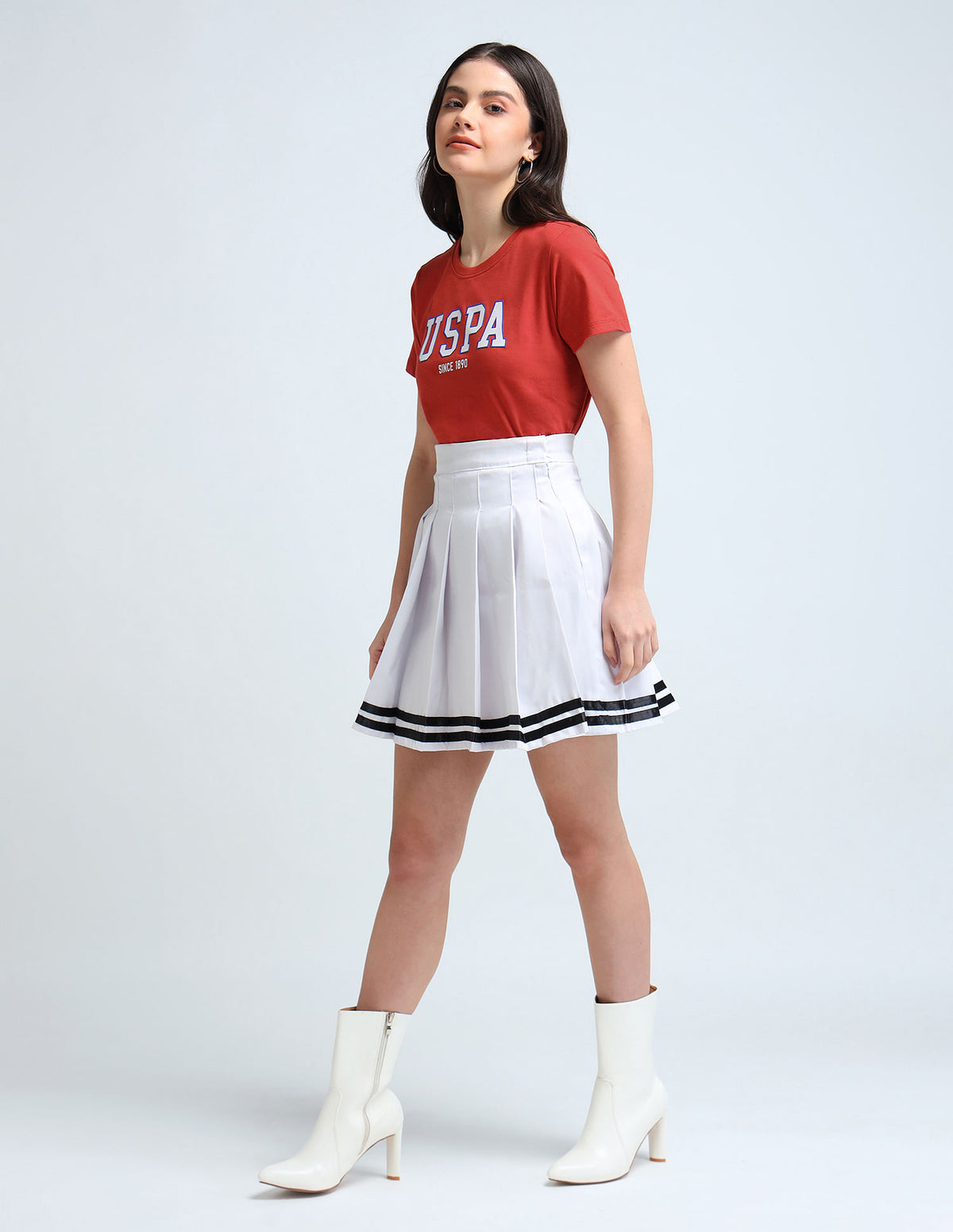 | Ribbed crew neck | Short sleeves | Straight hemline | Brand printed pattern | Single jersey knit | Regular fit | Country Of Origin - India