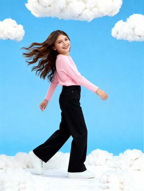 Girls Wide Leg Fit Black Jeans