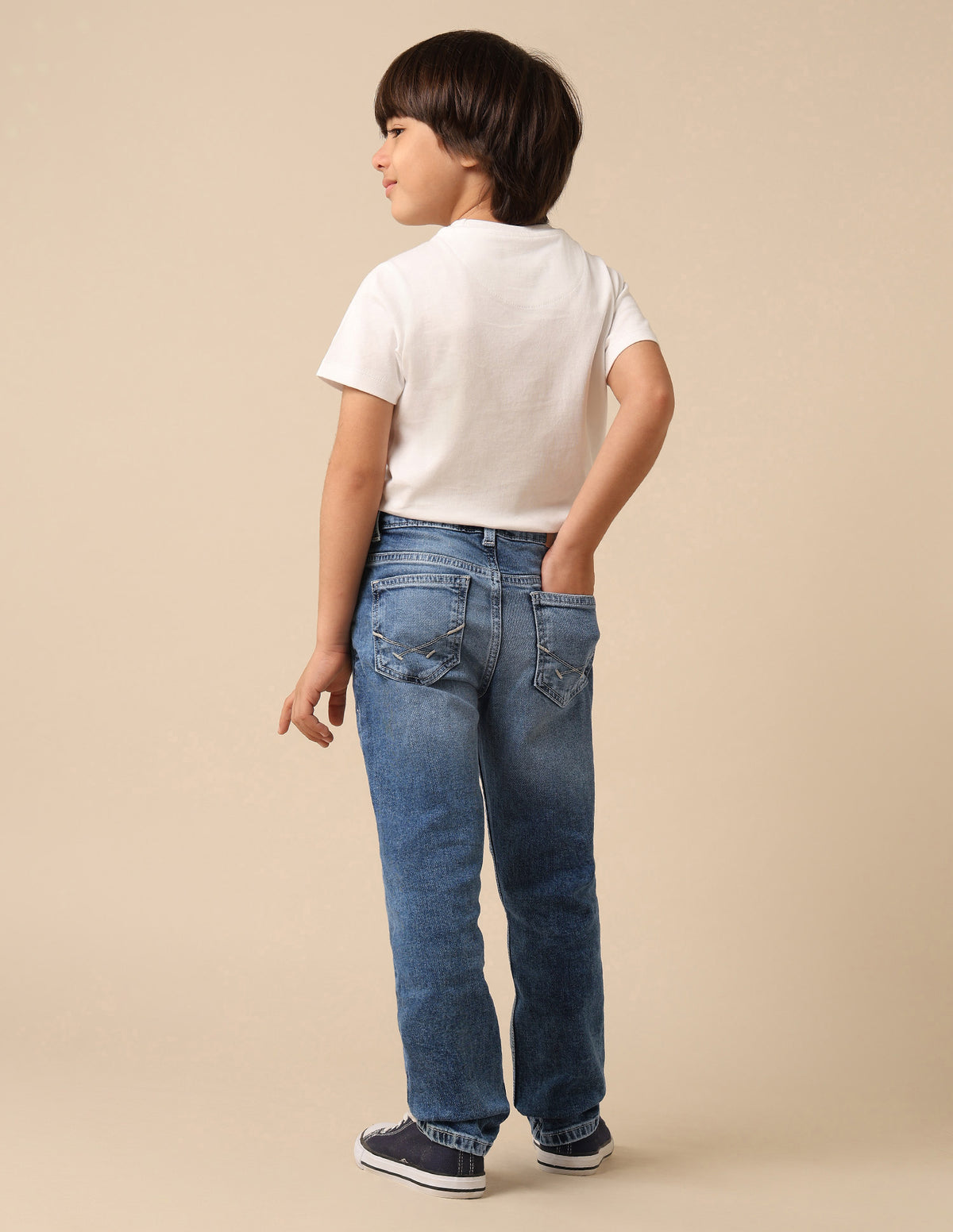 Story: Classic solid jeans for boys' casual wear, offering timeless style and durability.