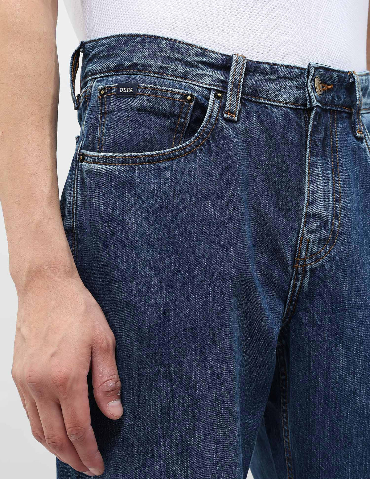 Story: Solid men's jeans for casual occasions. These comfortable and versatile pants are perfect for relaxed outings and everyday wear.