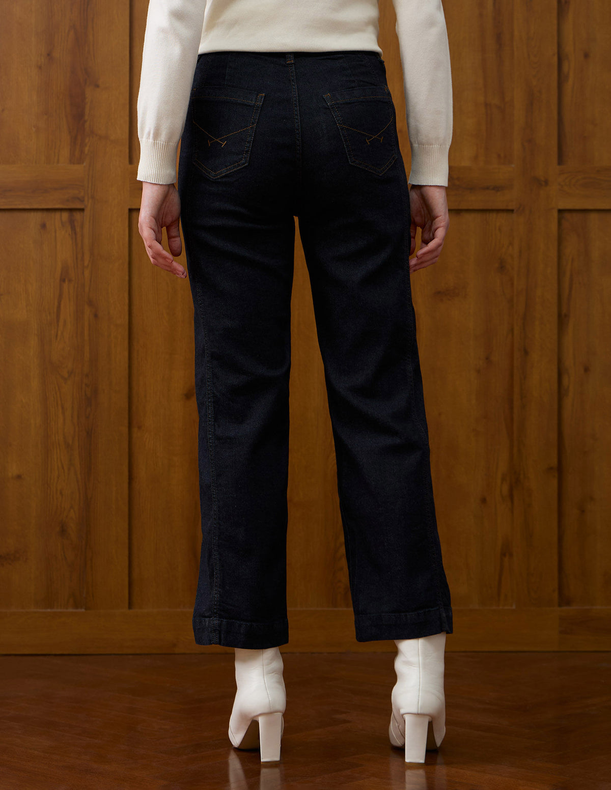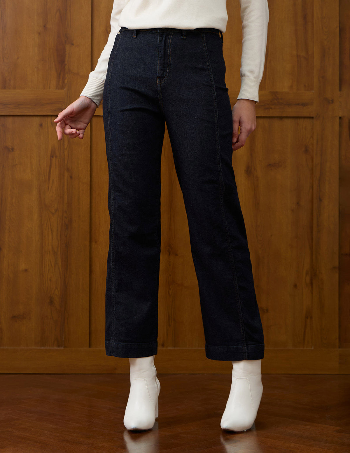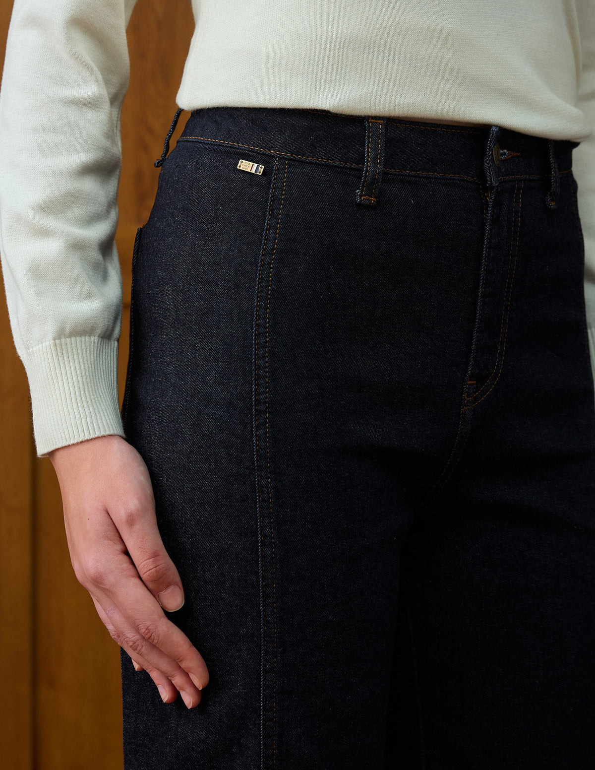 | High-rise waist | Button and zip fly closure | Five pockets | Denim weave | Straight fit |