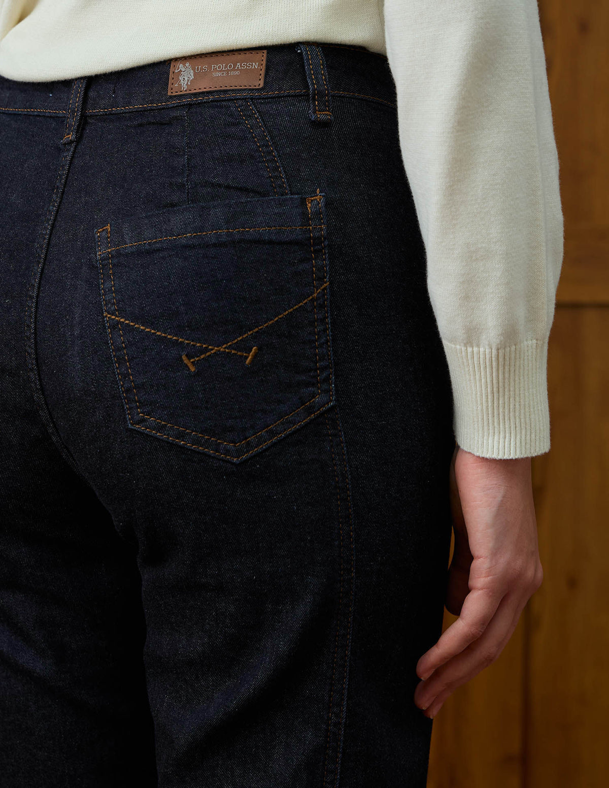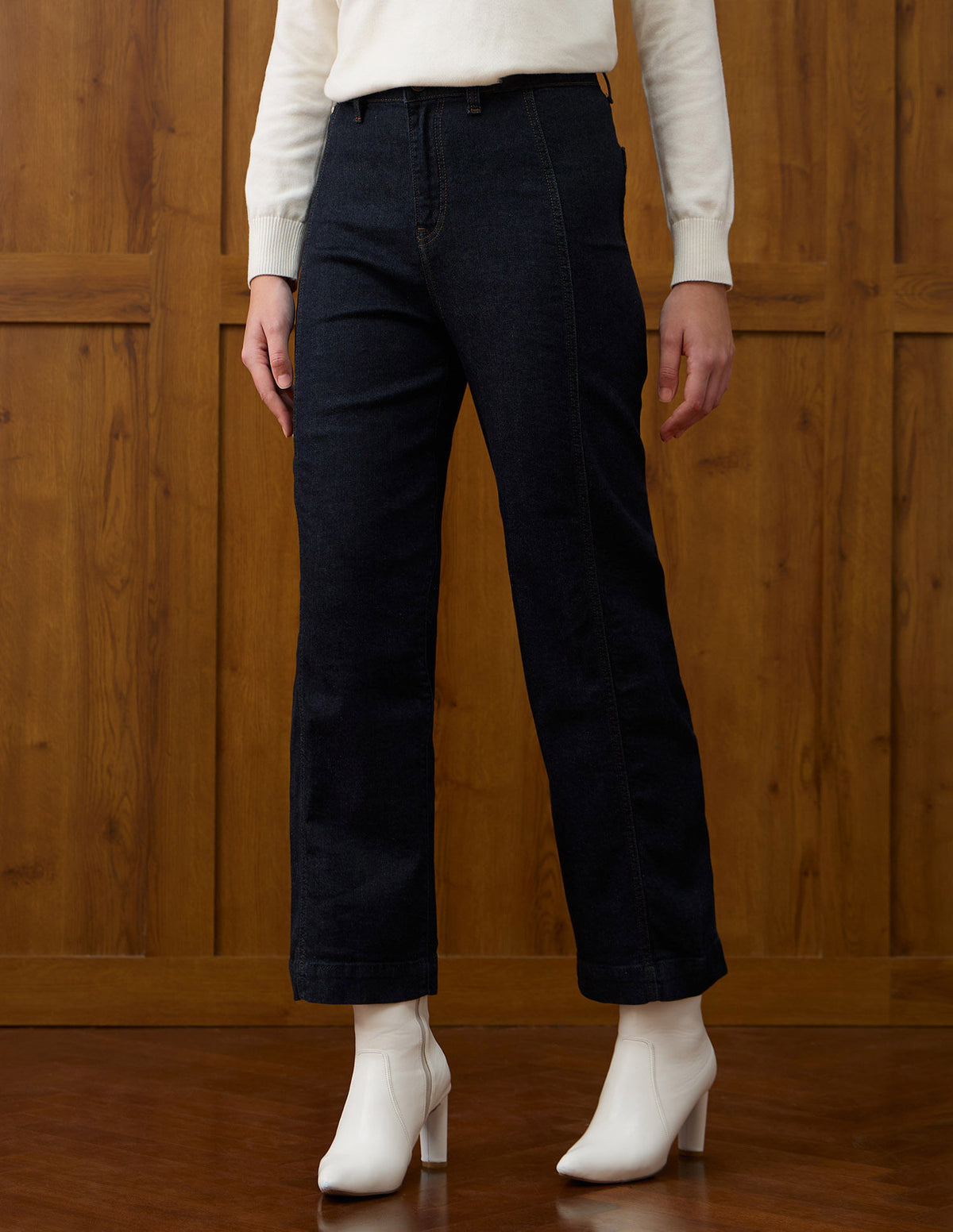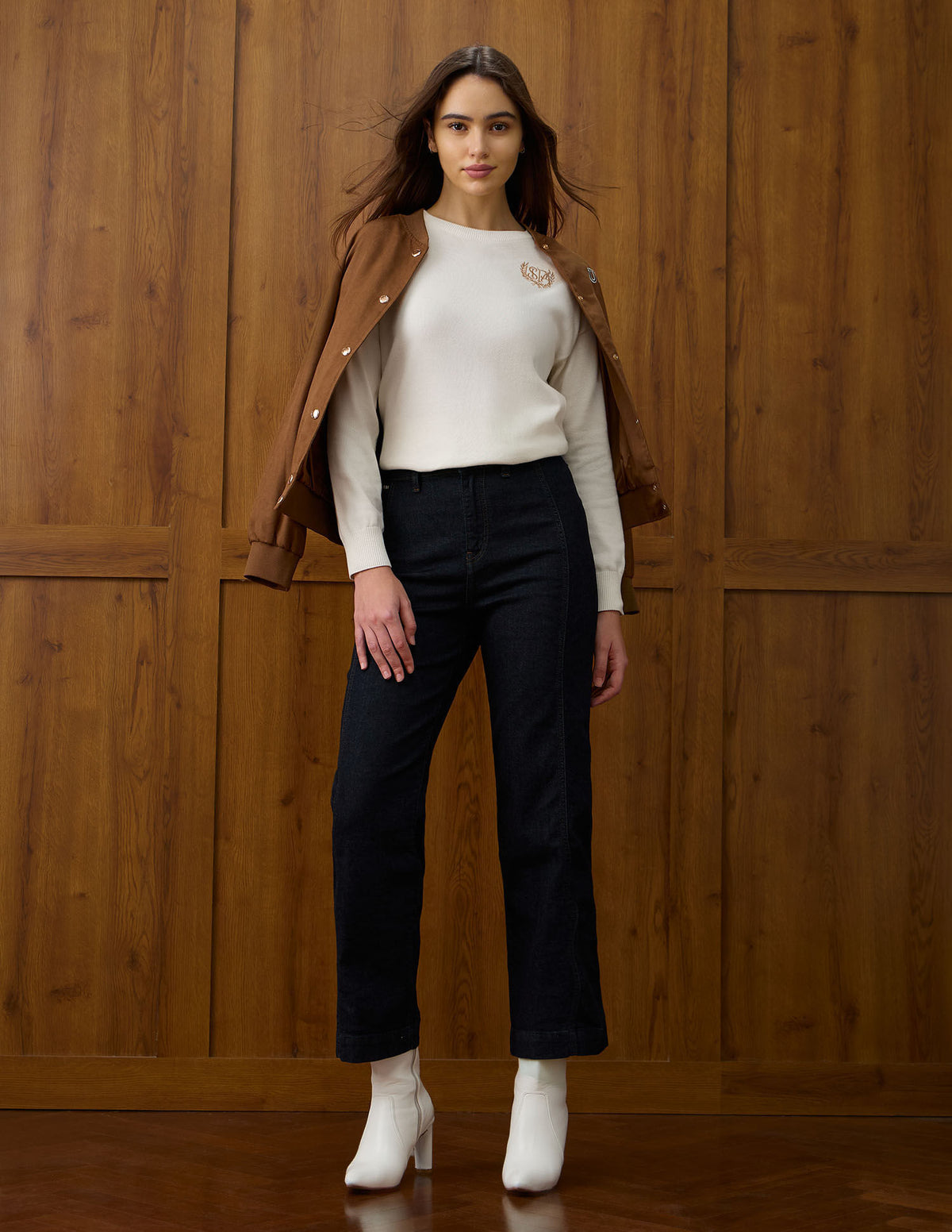 | High-rise waist | Button and zip fly closure | Five pockets | Denim weave | Straight fit |