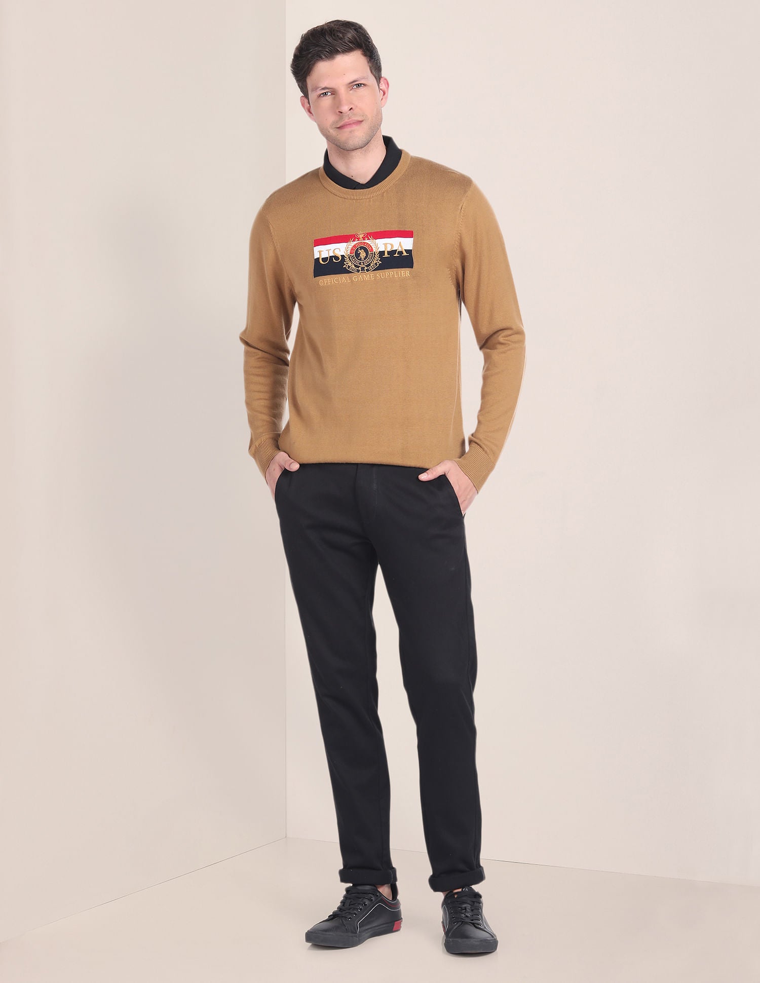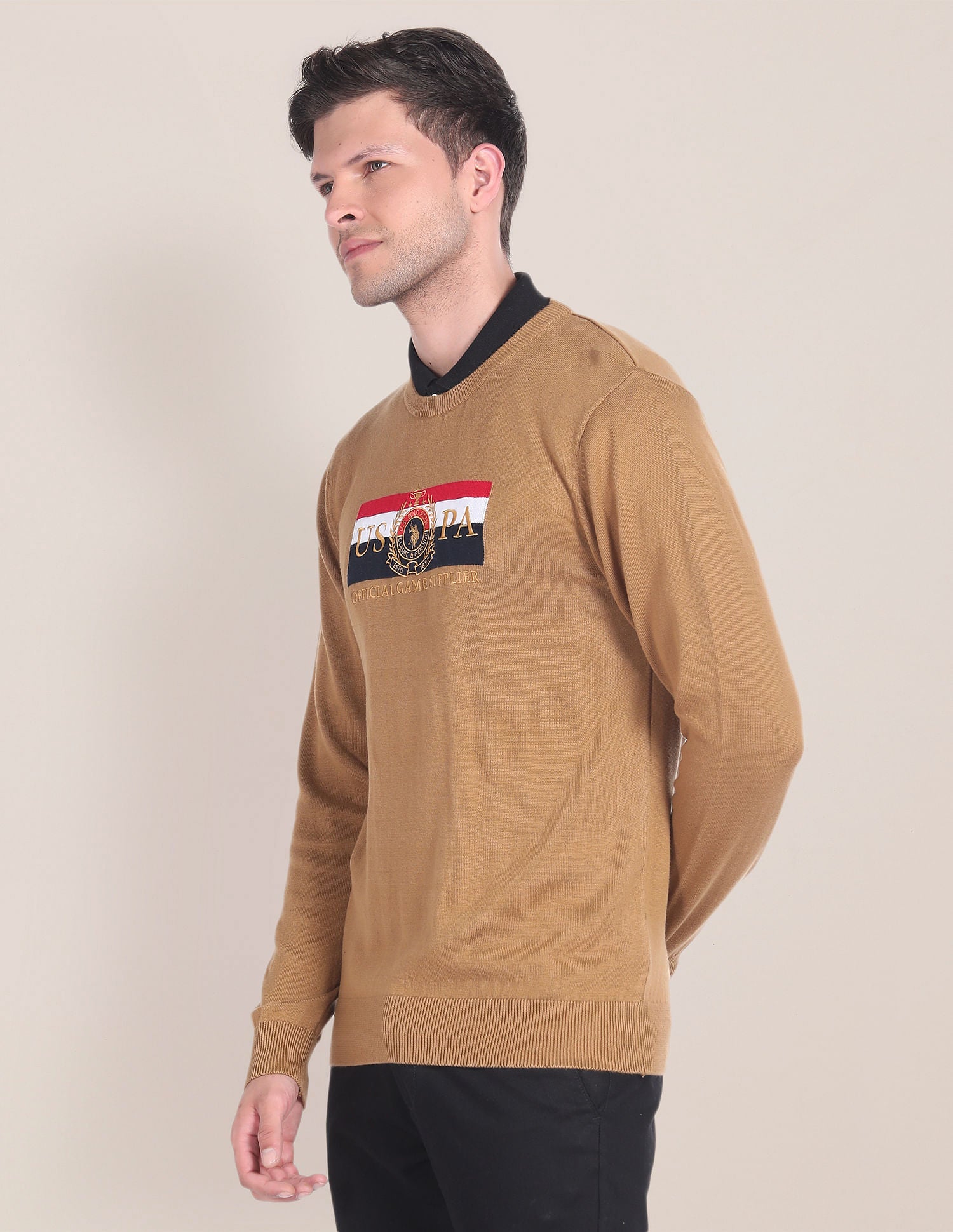 Crew Neck Brand Embroidered Sweater