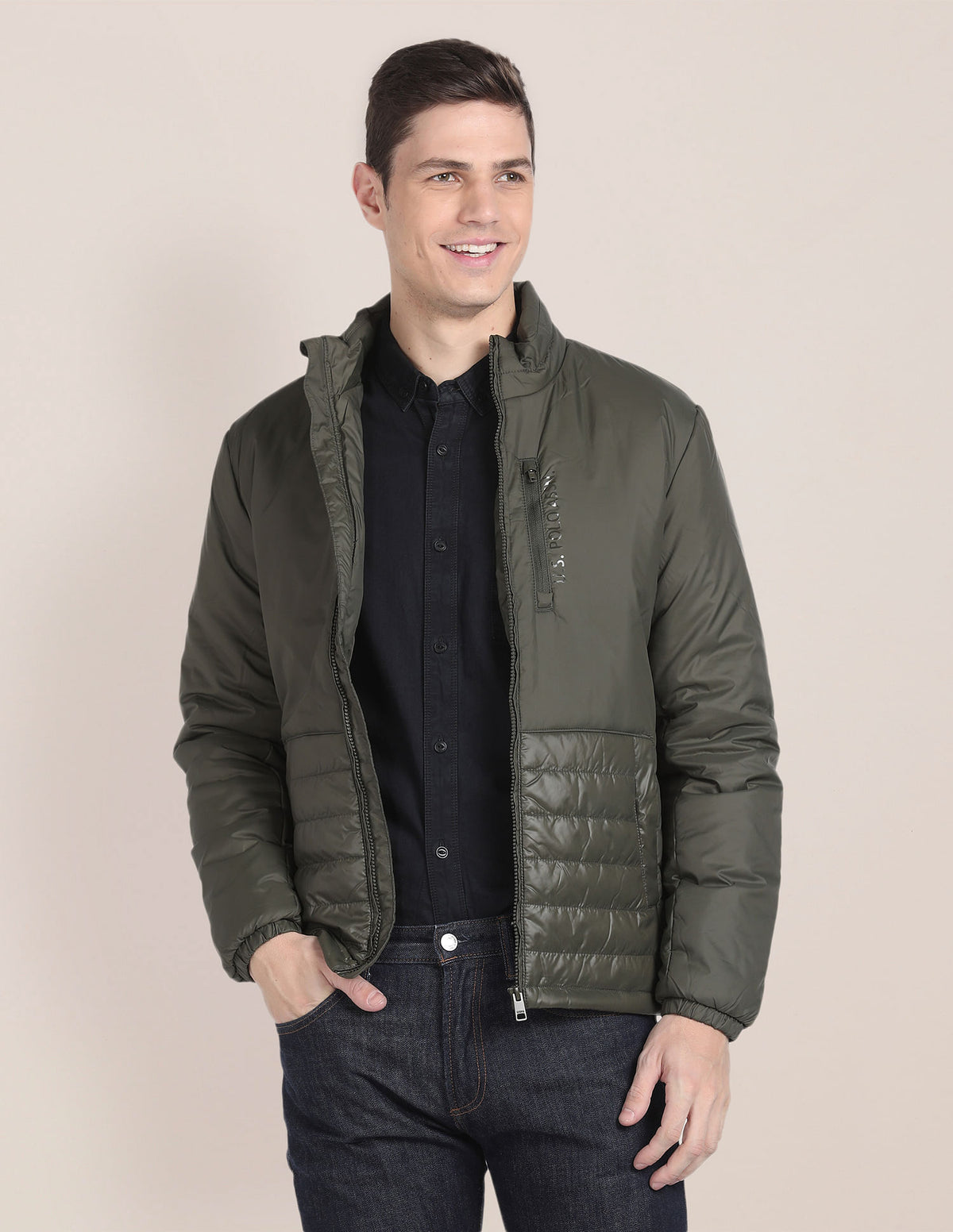 Solid Zip Up Quilted Jacket