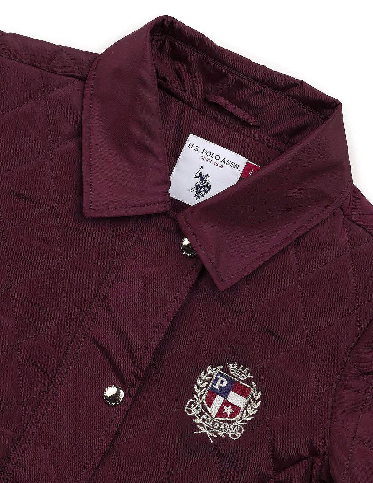 | Spread collar | Full zipper closure | Long sleeves | Logo at left sleeve | Elasticized sleeve hems and hemline | Two pockets | Solid pattern |