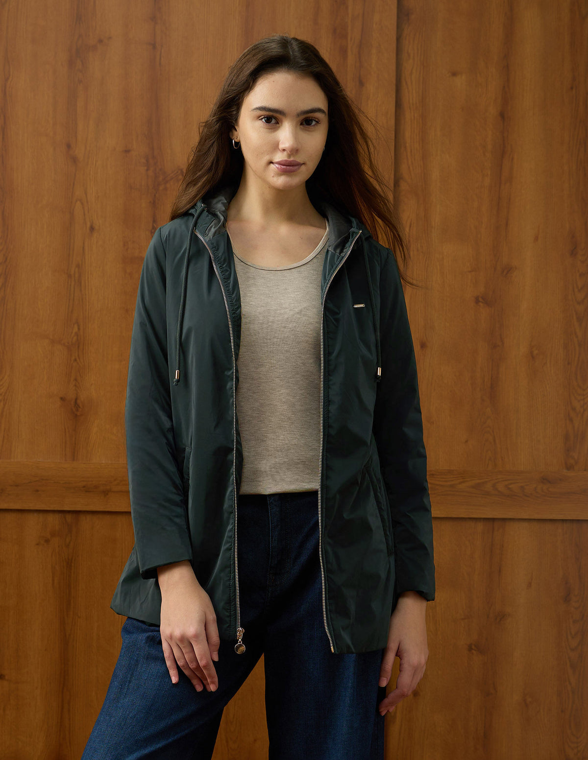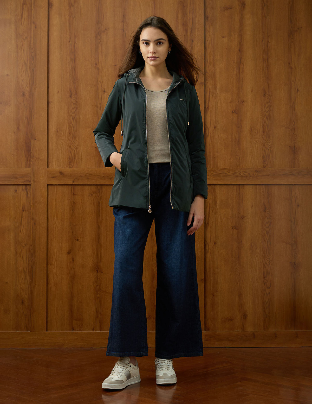 | Hooded | Full zipper closure | Long sleeves | 2 pockets | Solid pattern | Regular fit |