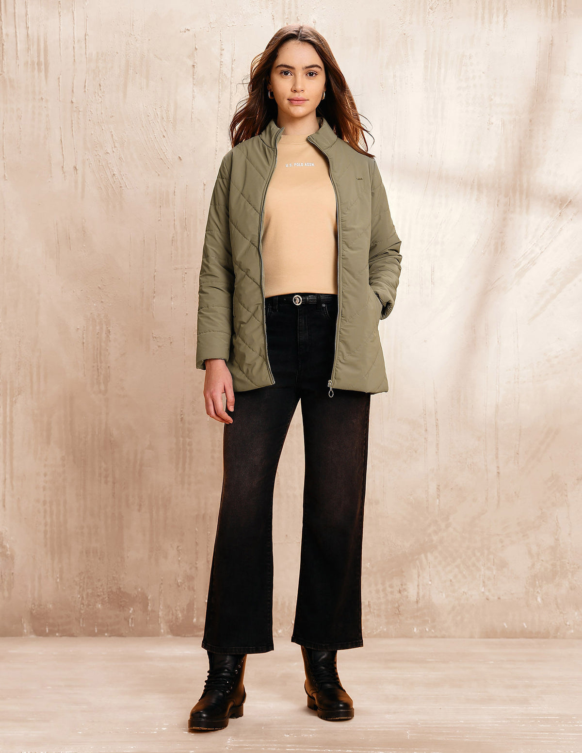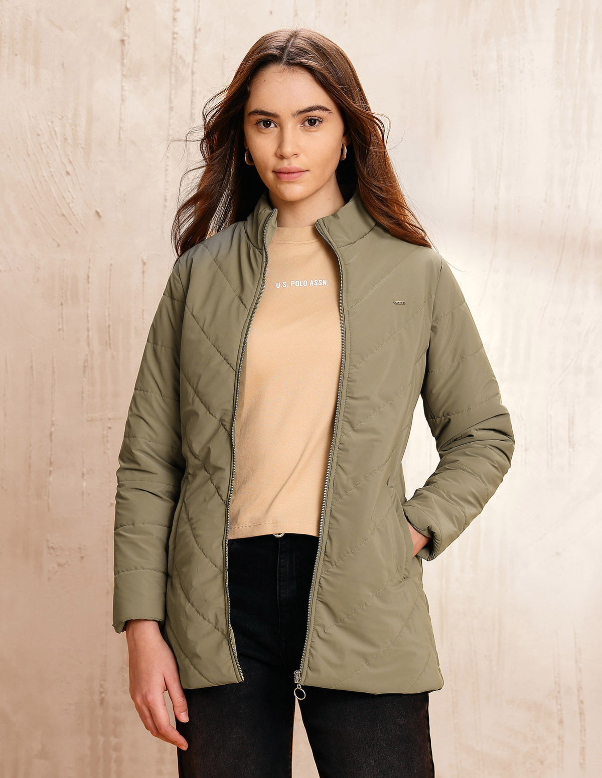 | Stand collar | Full zipper closure | Long sleeves | Logo at chest |2 pockets | Solid pattern | Regular fit |