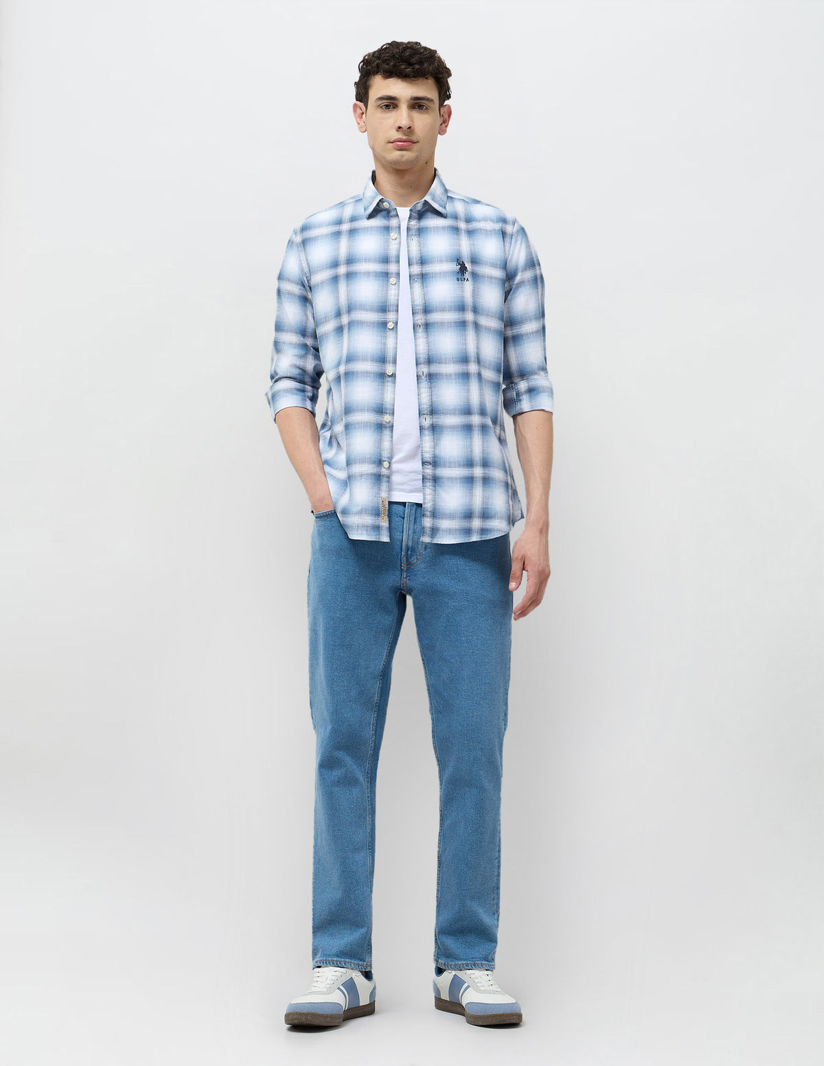Story: This men's shirt presents a traditional checked design, offering classic appeal and comfortable wear ideal for casual occasions and leisurely weekend outings with effortless style.