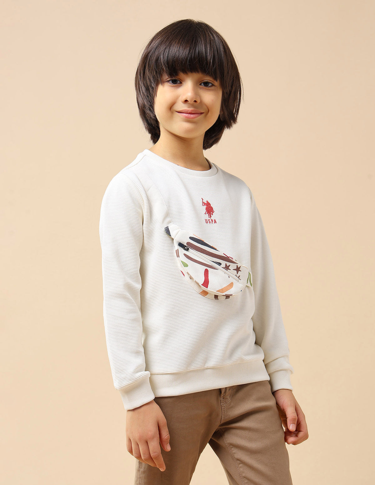 Story: Elevate your boy's casual style with this textured sweatshirt, perfect for everyday comfort and effortless fashion.