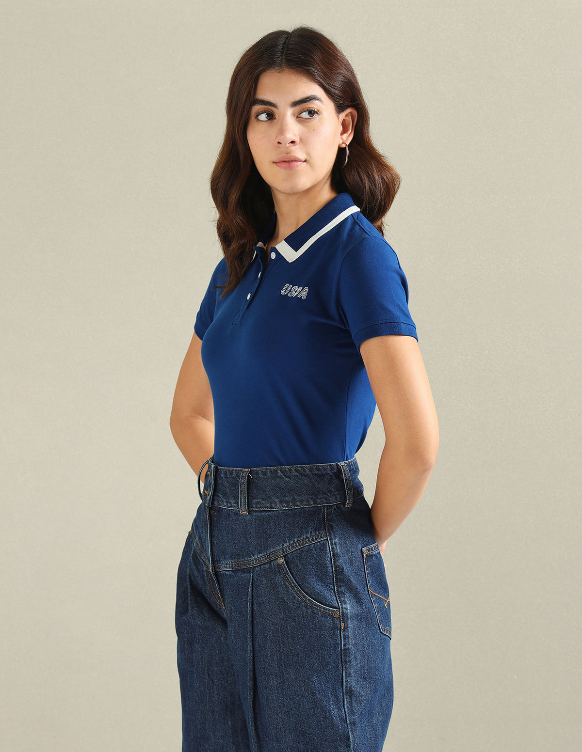 Story: This polo shirt from the Free Spirit collection features a tipped collar and a short button placket.