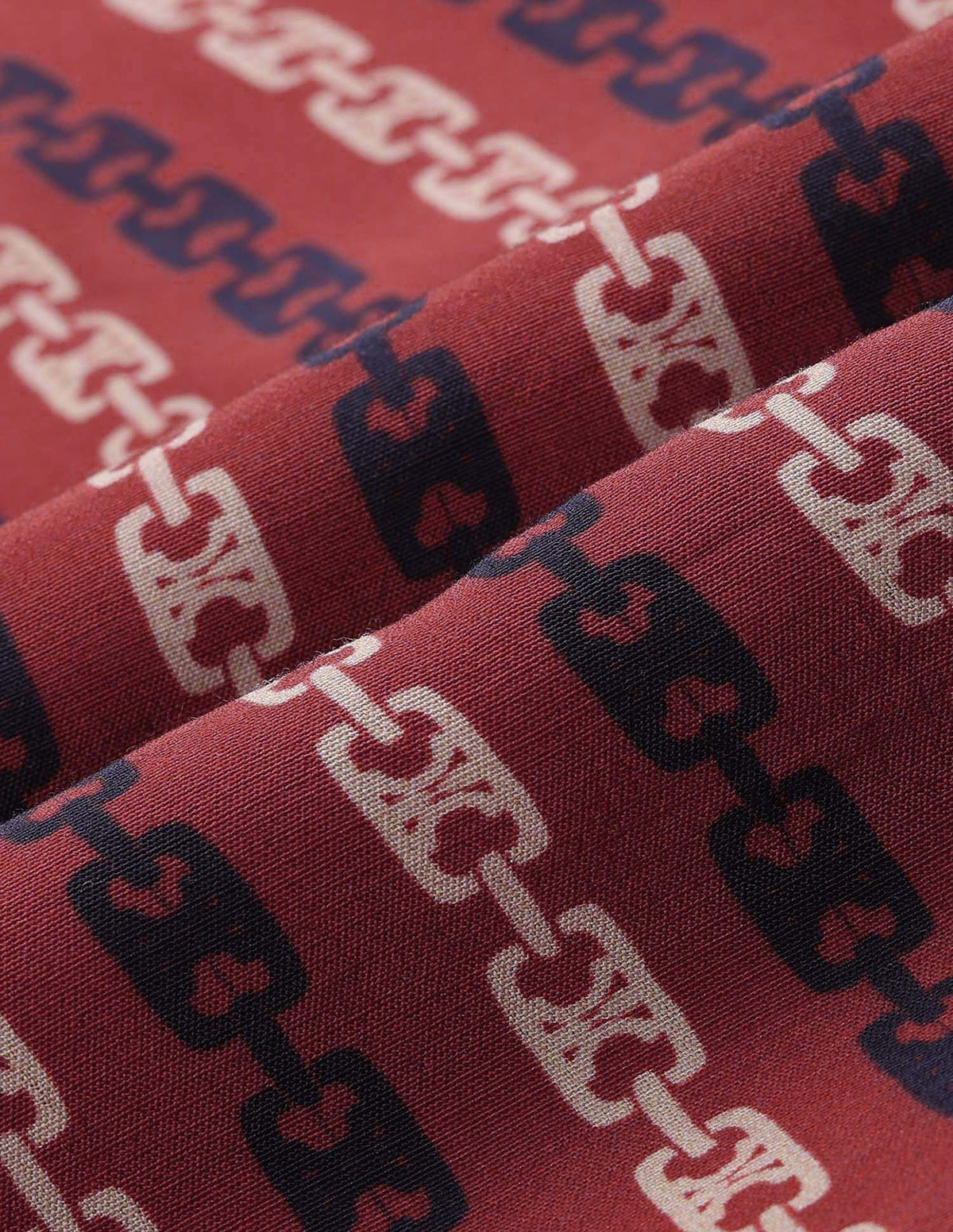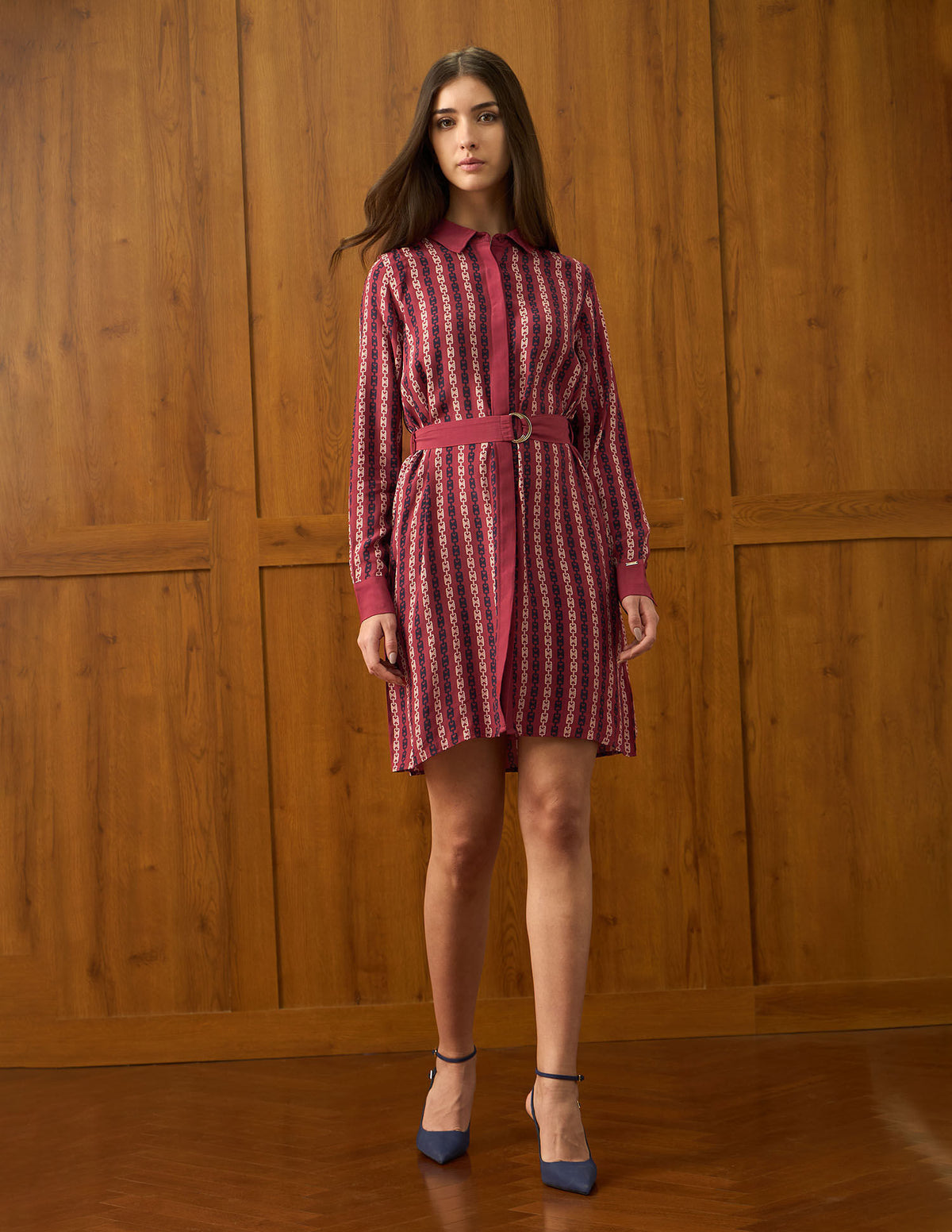| Shirt collar | Full concealed button placket | Long sleeve | Abstract printed pattern |