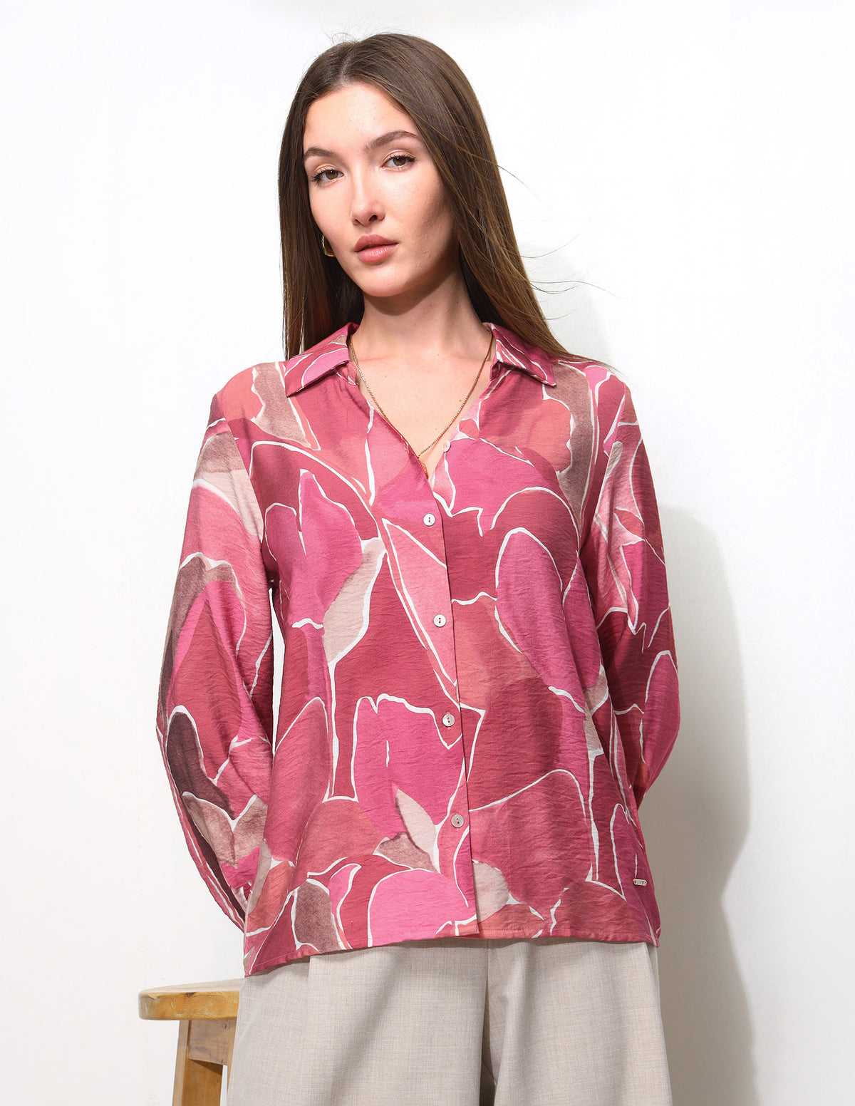 Abstract Printed V-Neck Collar Shirt