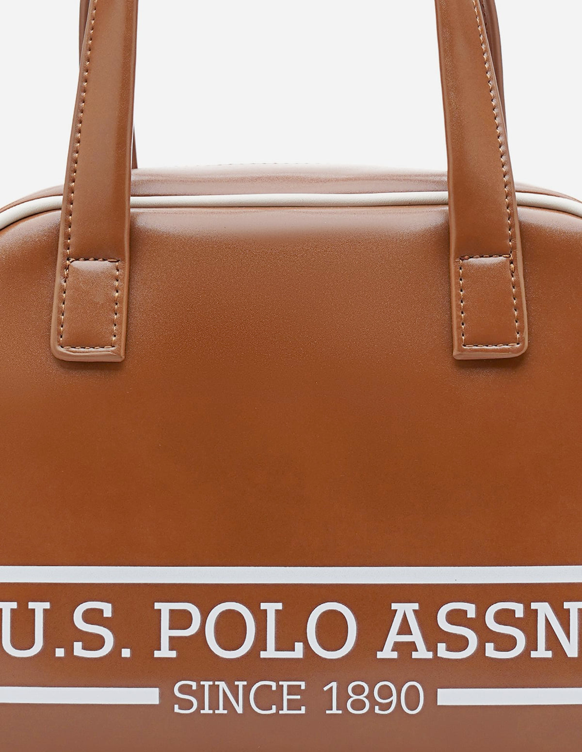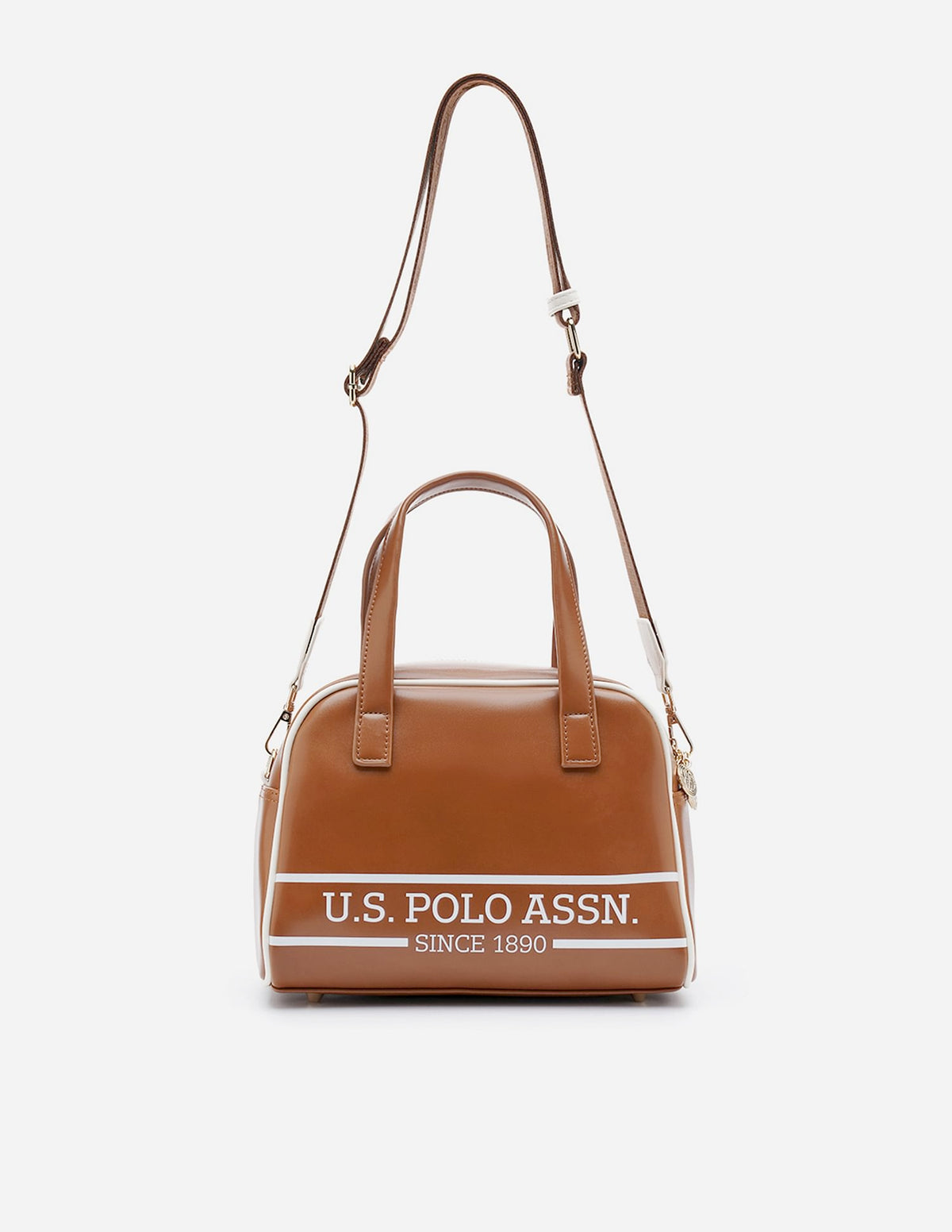 | Top handles | Detachable and adjustable shoulder strap | One main compartment with zipper closure | Brand printed pattern |