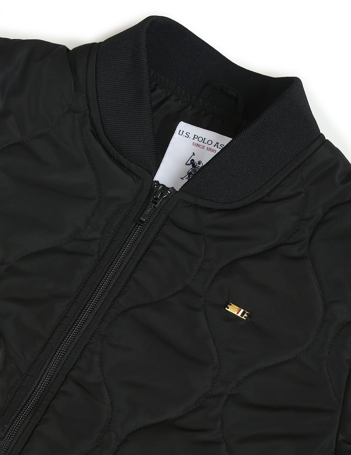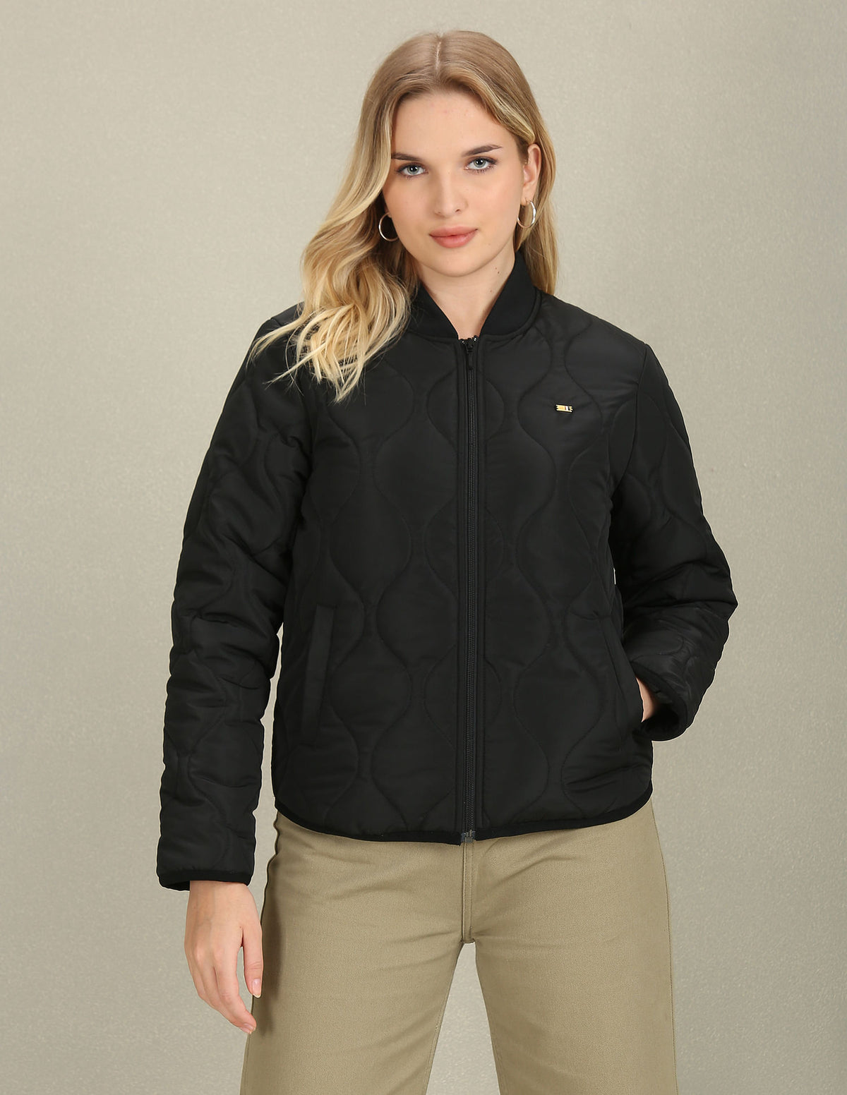 Story: Made from a polyester fabric, this jacket features a stand collar and two pockets.