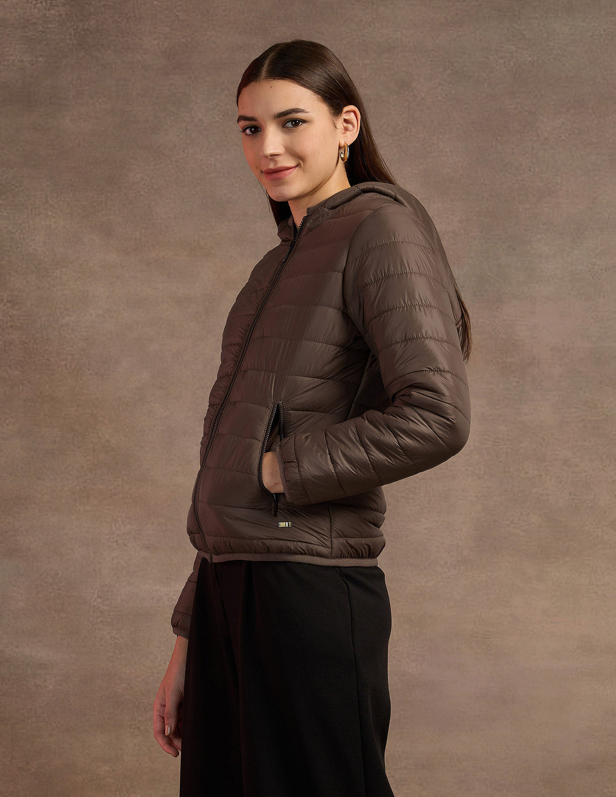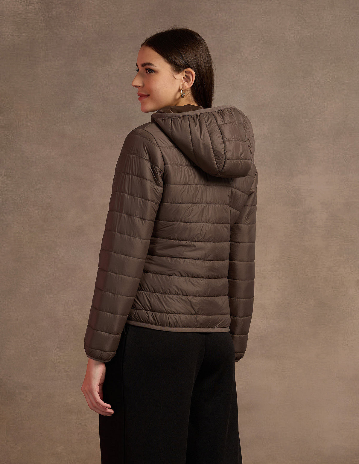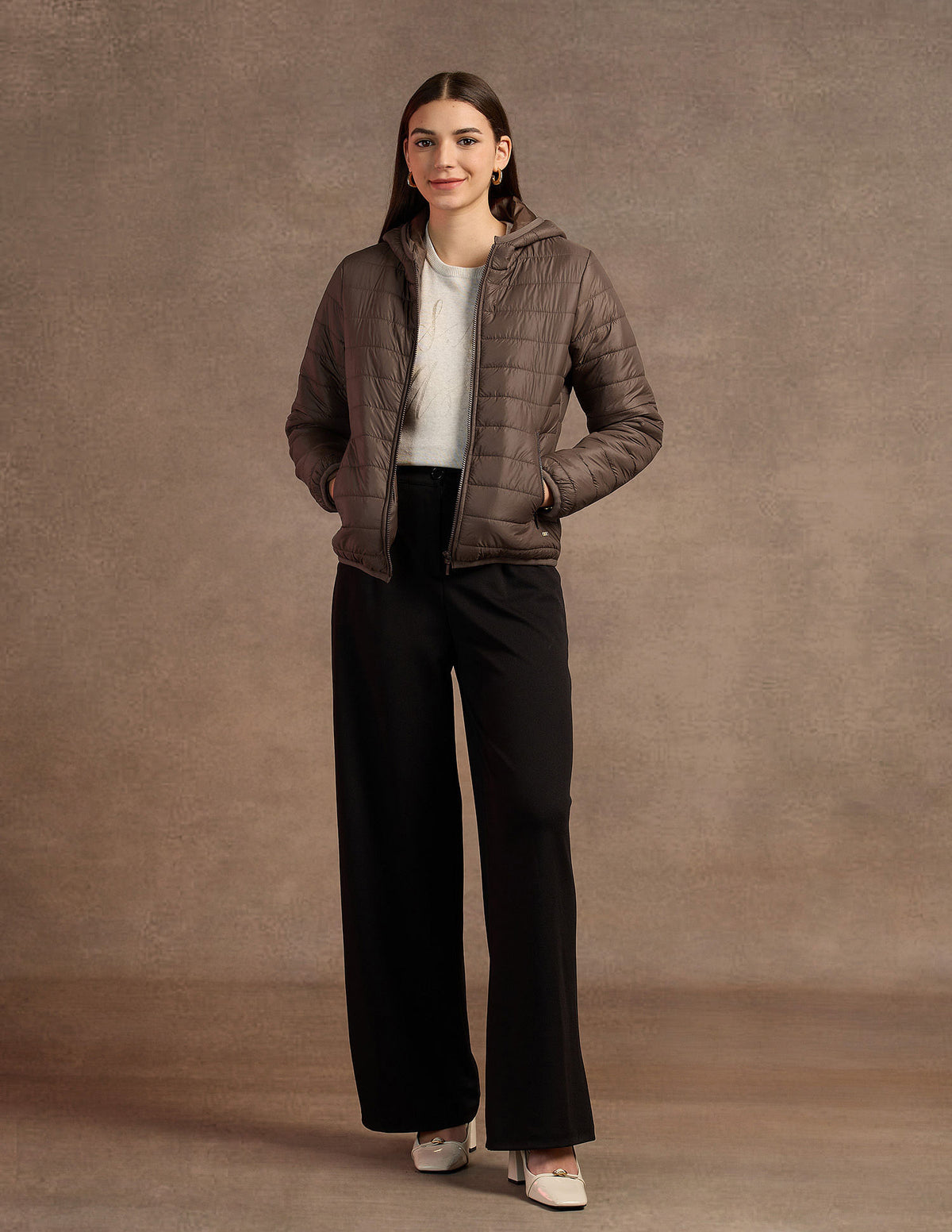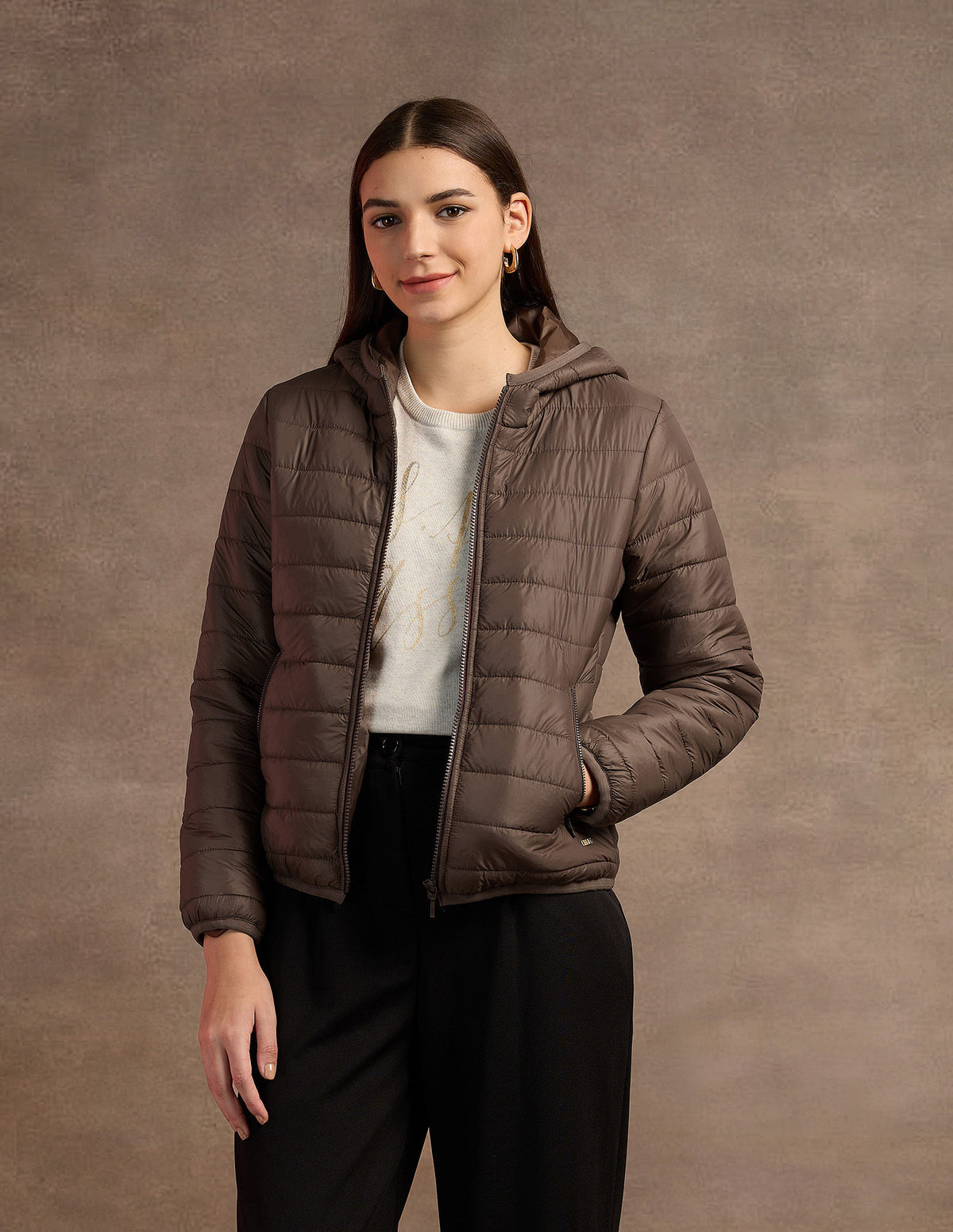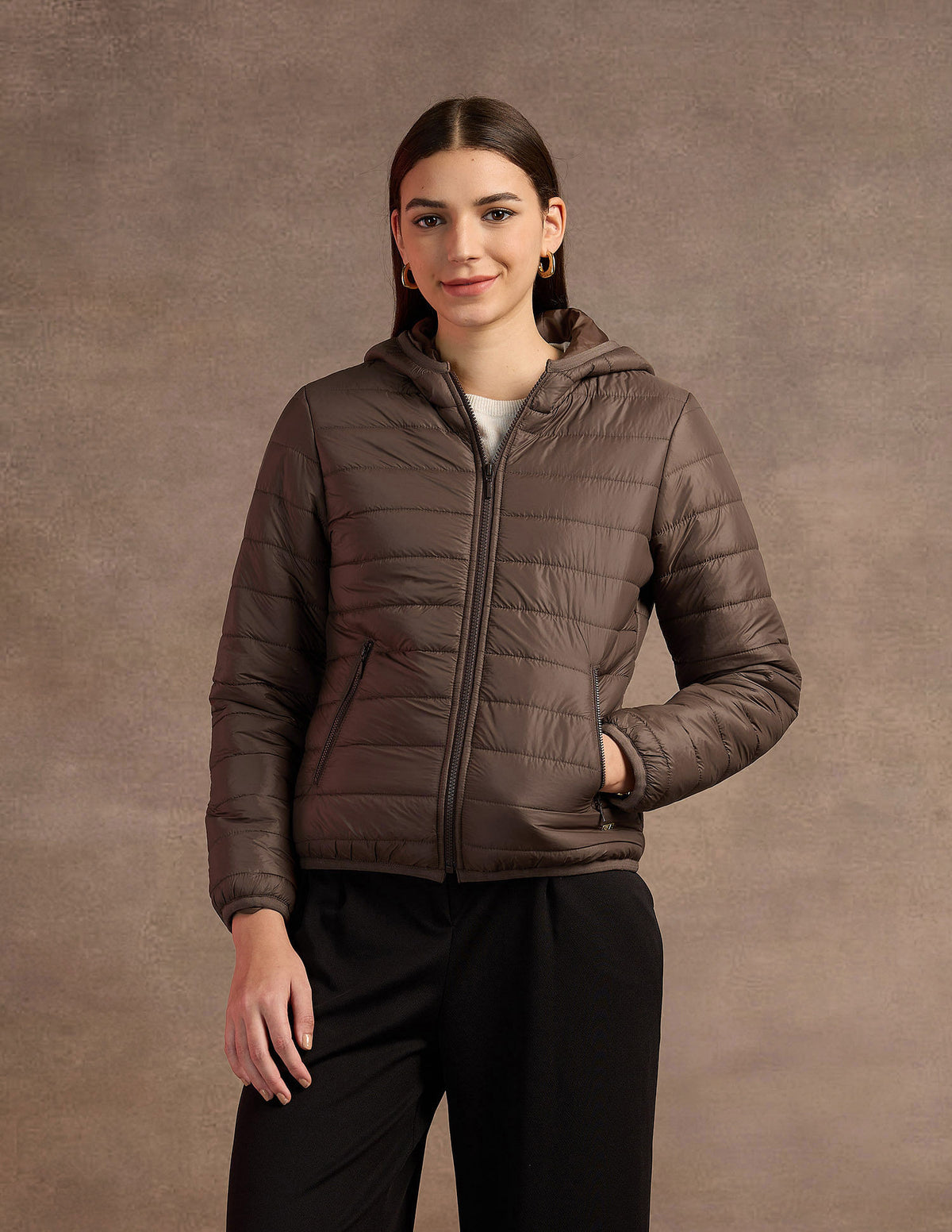 | Hooded | Full zipper closure | Long sleeves | Two pockets | Quilted construction | Solid pattern |