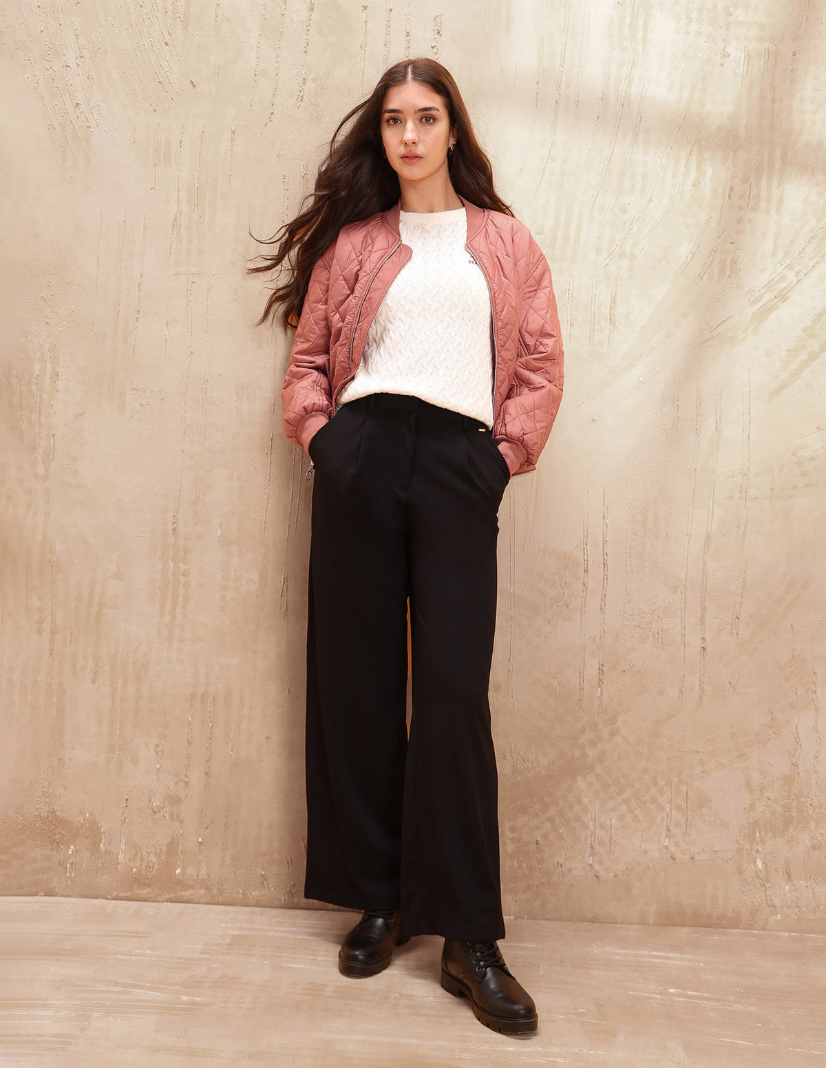 | Stand collar | Full zipper closure | Long sleeves | Elasticized sleeve hems and hemline | Three pockets | Solid pattern | Regular fit |