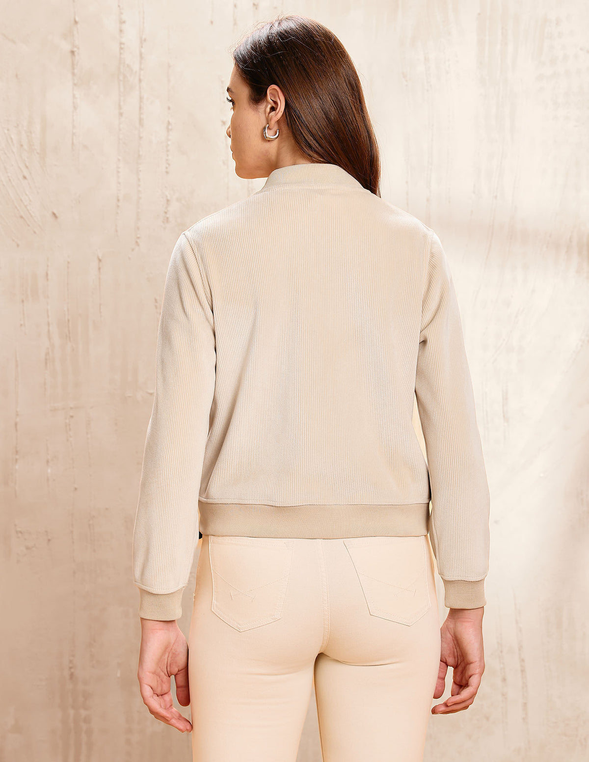 | Mandarin collar | Full zipper closure | Long sleeves | Logo at left bottom | Elasticized sleeve hems and hemline |2 pockets | Reversible |Textured pattern | Regular fit |