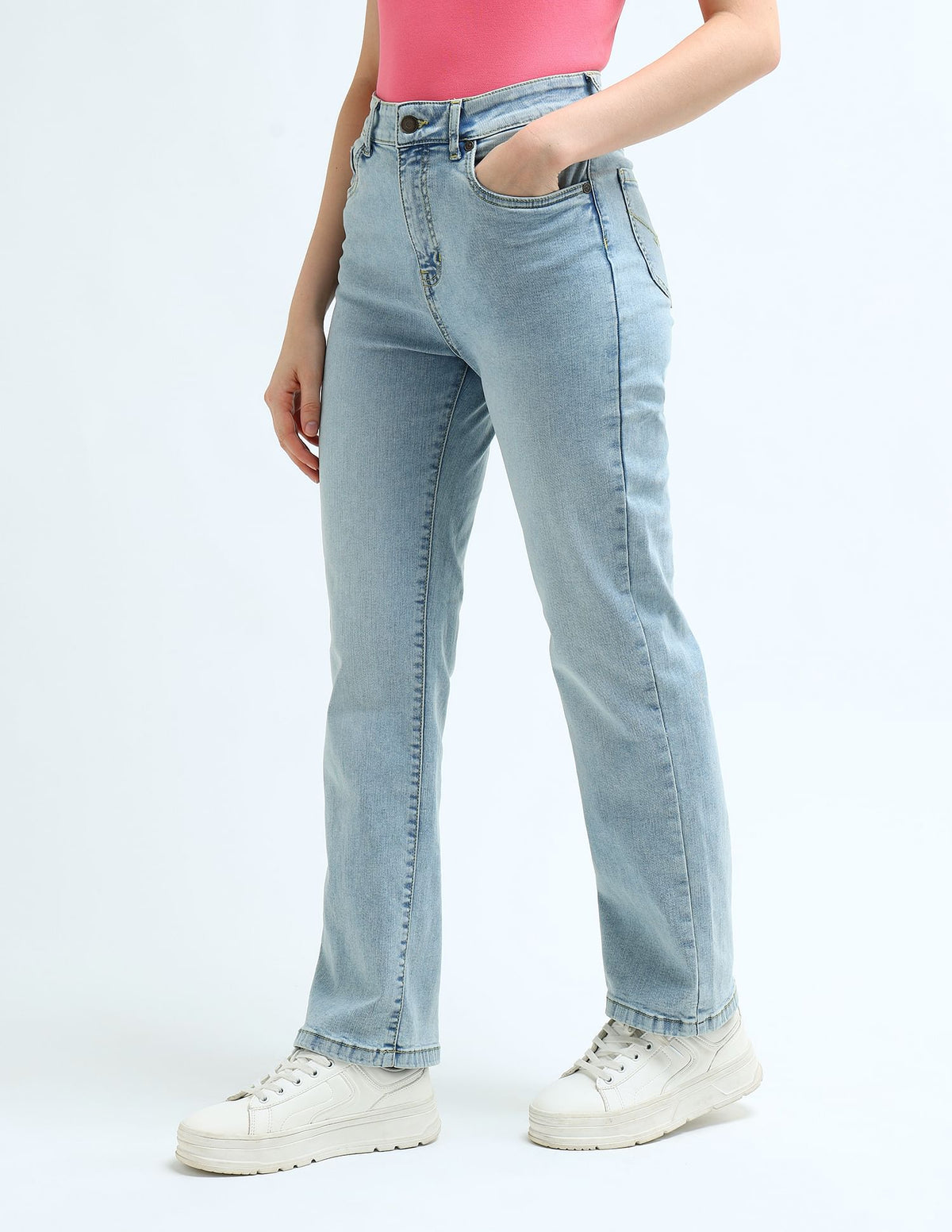 | High-rise waist | Button and zip fly closure | Five pockets | Tinted | Denim weave | Straight fit |