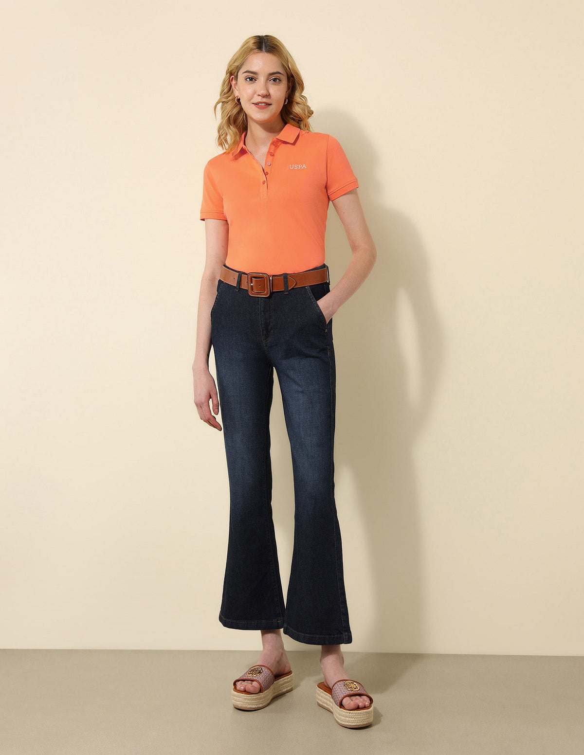 | Polo collar | Logo at chest | Short button placket | Short sleeves | Ribbed collar and sleeve hems | Vented hem | Solid pattern | Pique knit | Regular fit |