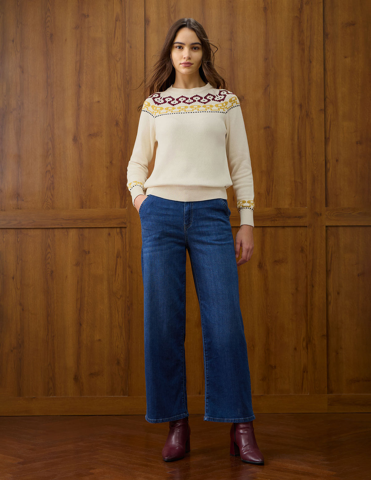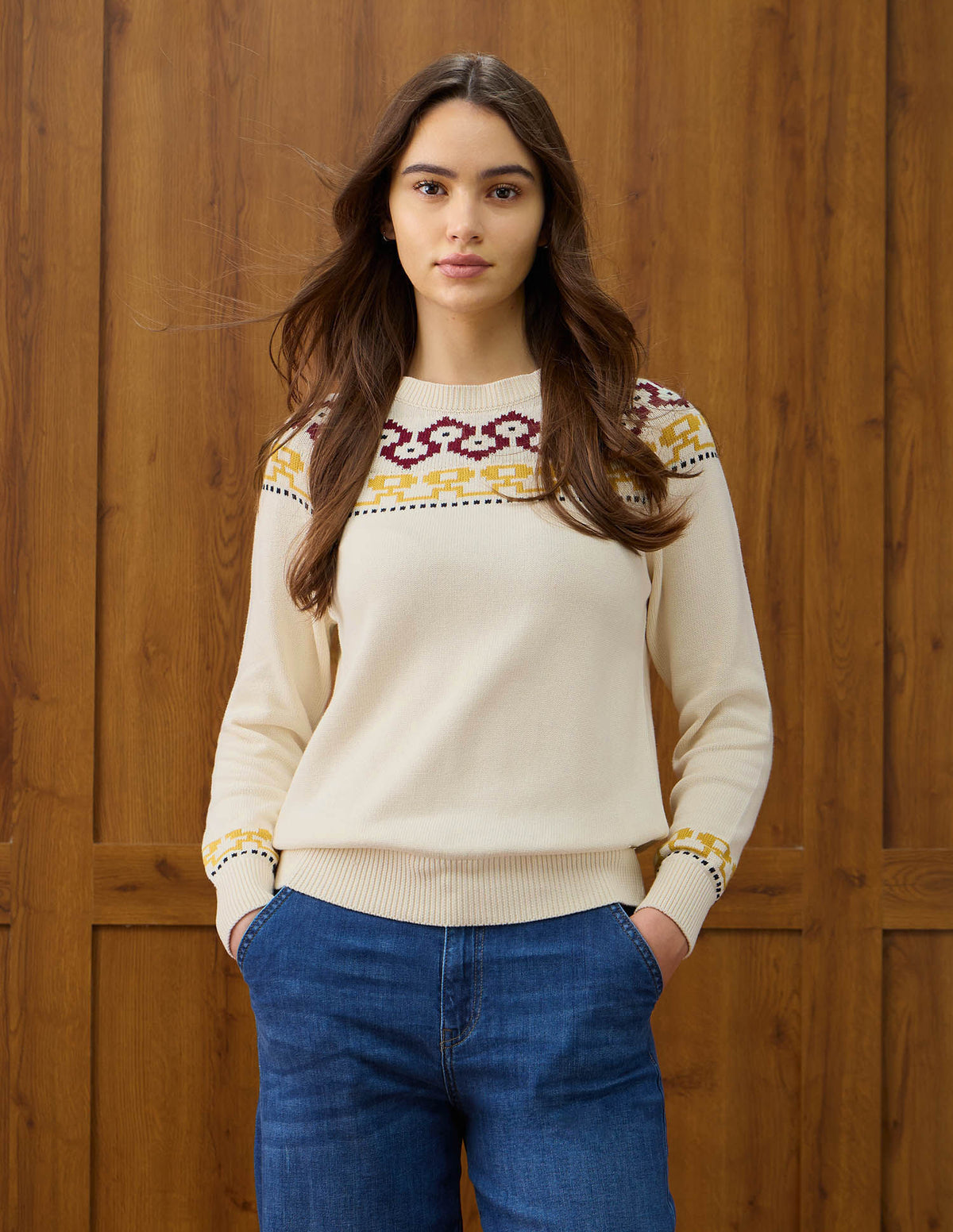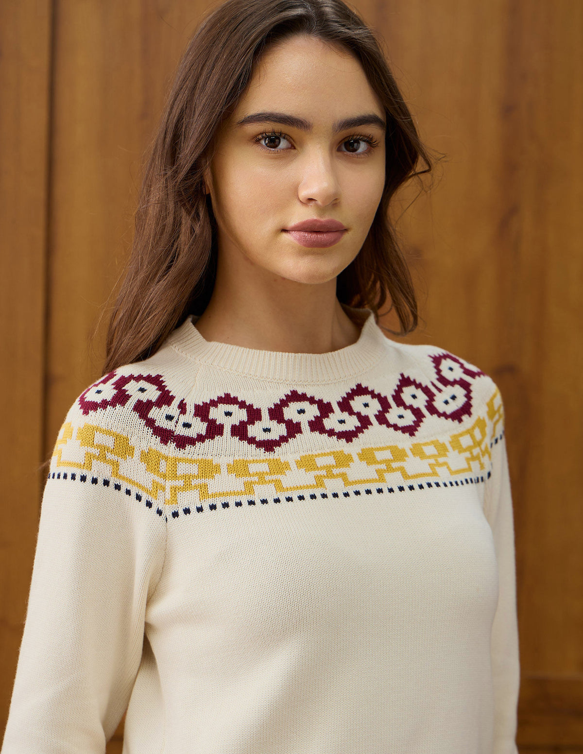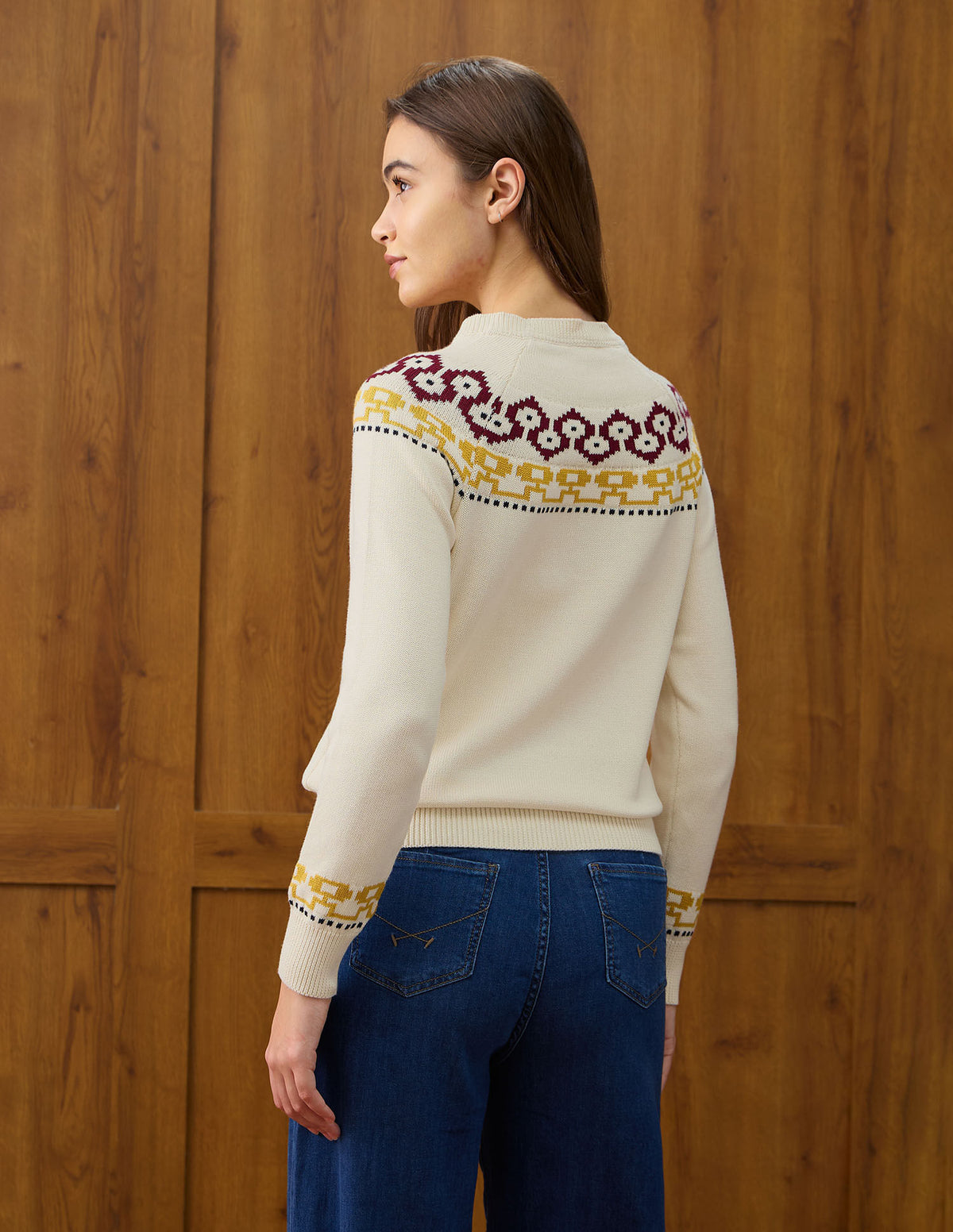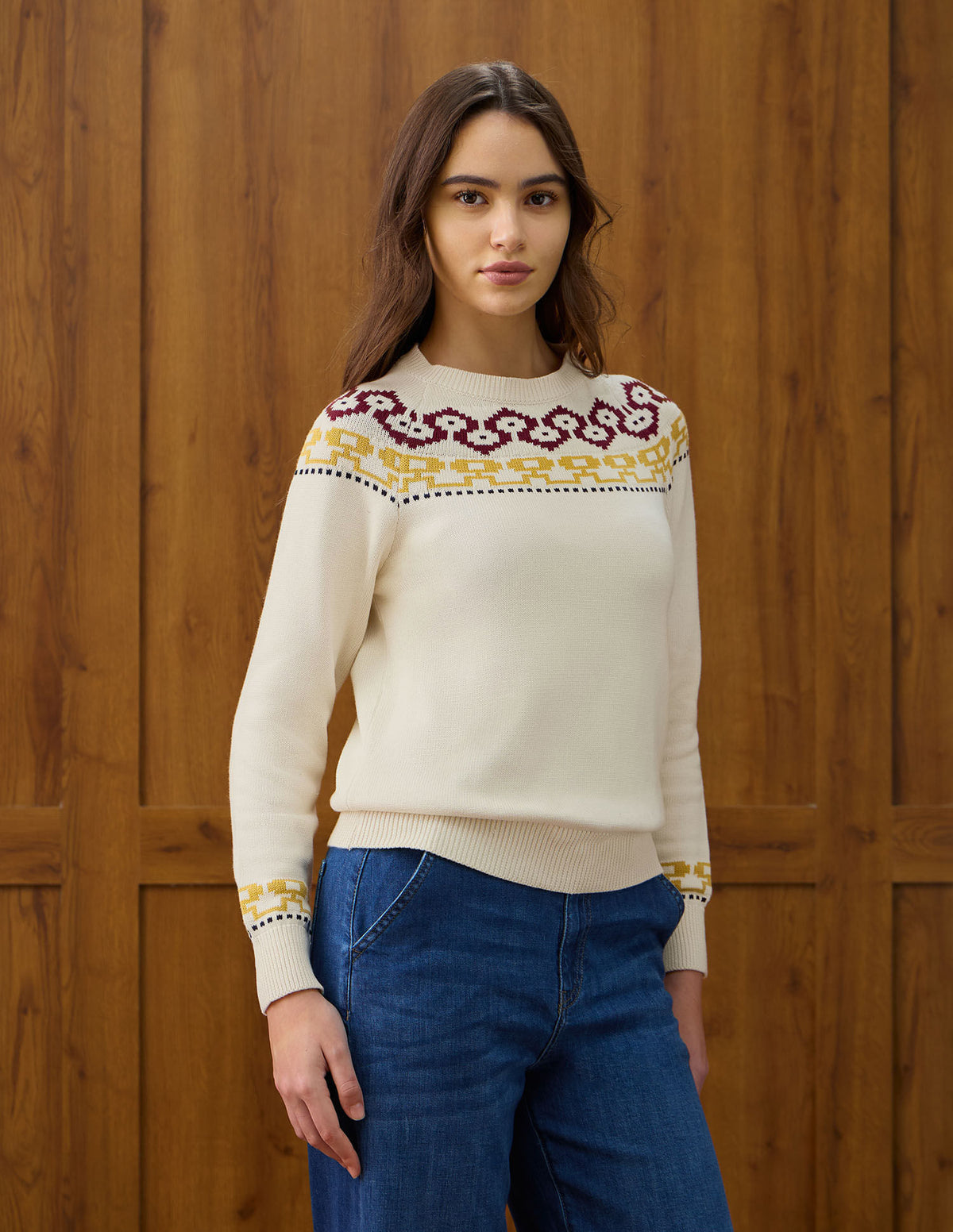 | Crew neck | Long sleeves | Ribbed neck, sleeve hems and hemline | Patterned knit | Knitted | Regular fit |