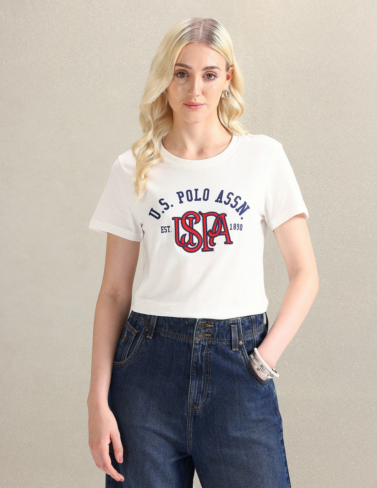 | Crew neck | Short sleeves | Straight hemline | Brand appliqued and printed pattern | Single jersey knit | Regular fit | Country Of Origin - India