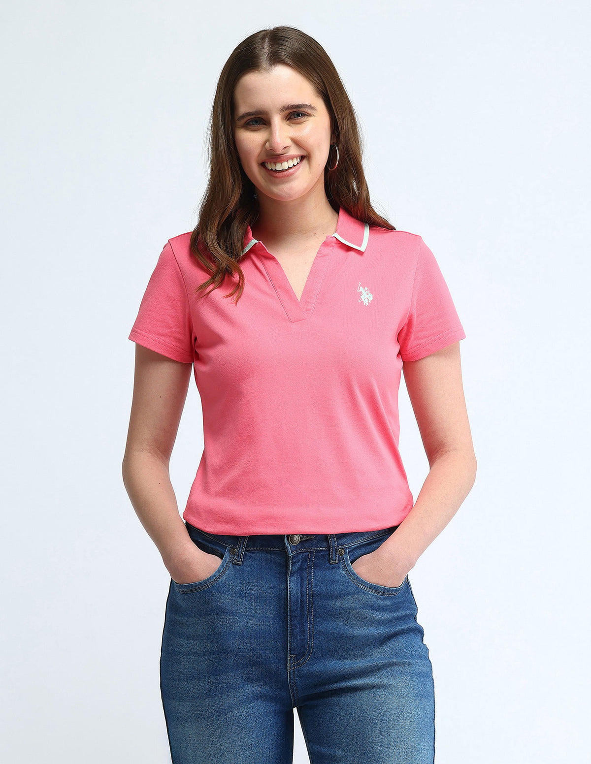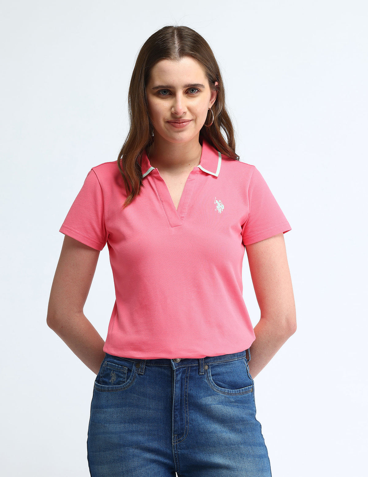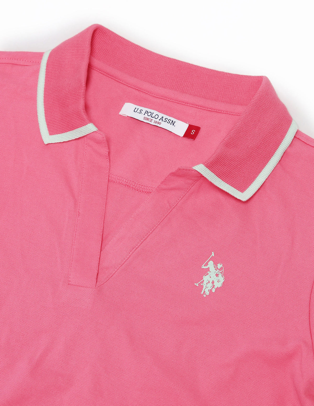 | Tipped polo collar | Embroidered logo at chest | Open placket | Short sleeves | Ribbed collar and sleeve hems | Vented hem | Solid pattern | Knitted | Regular fit |