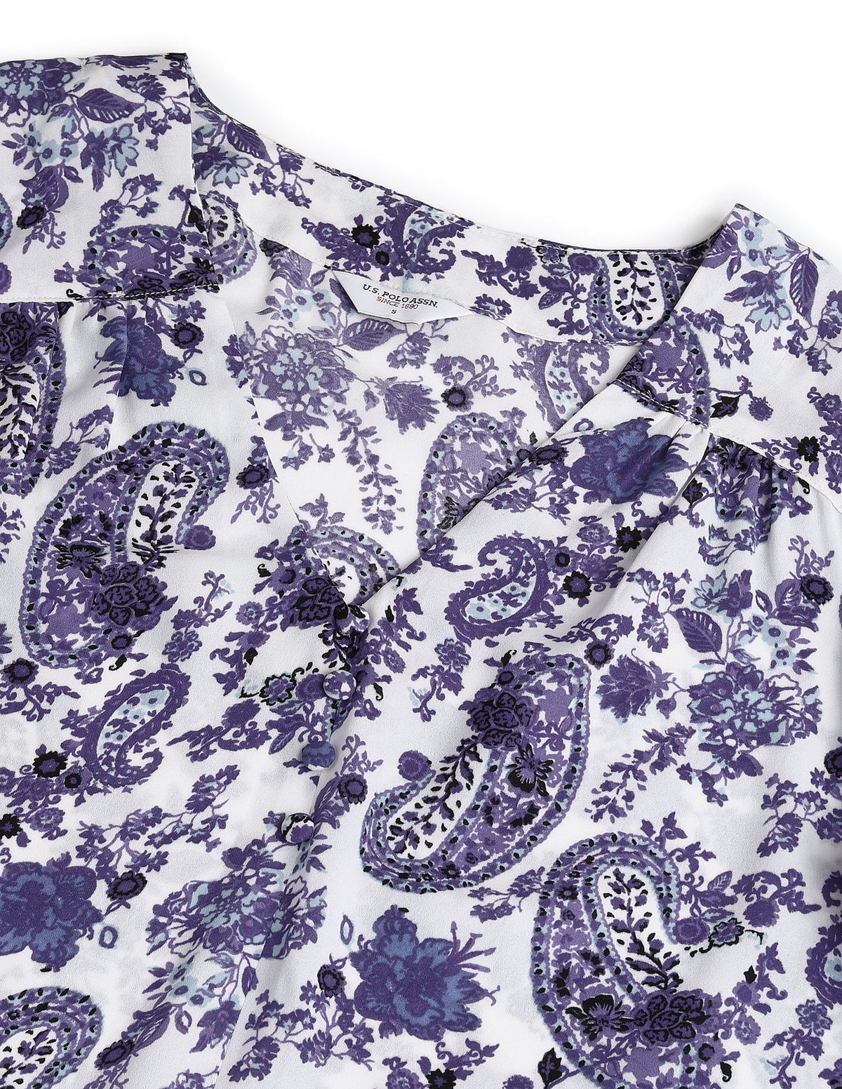 | V-neck | Long sleeves with buttoned hems | Straight hemline | Paisley printed pattern | Woven | Regular fit | Country Of Origin - India