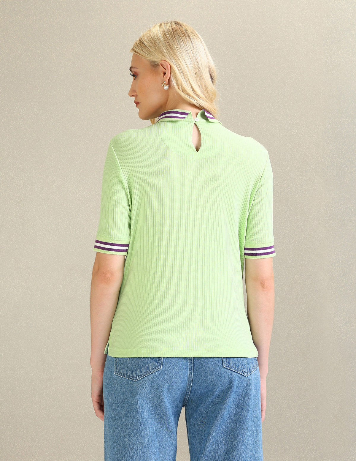 Striped Collar Solid Polo Shirt