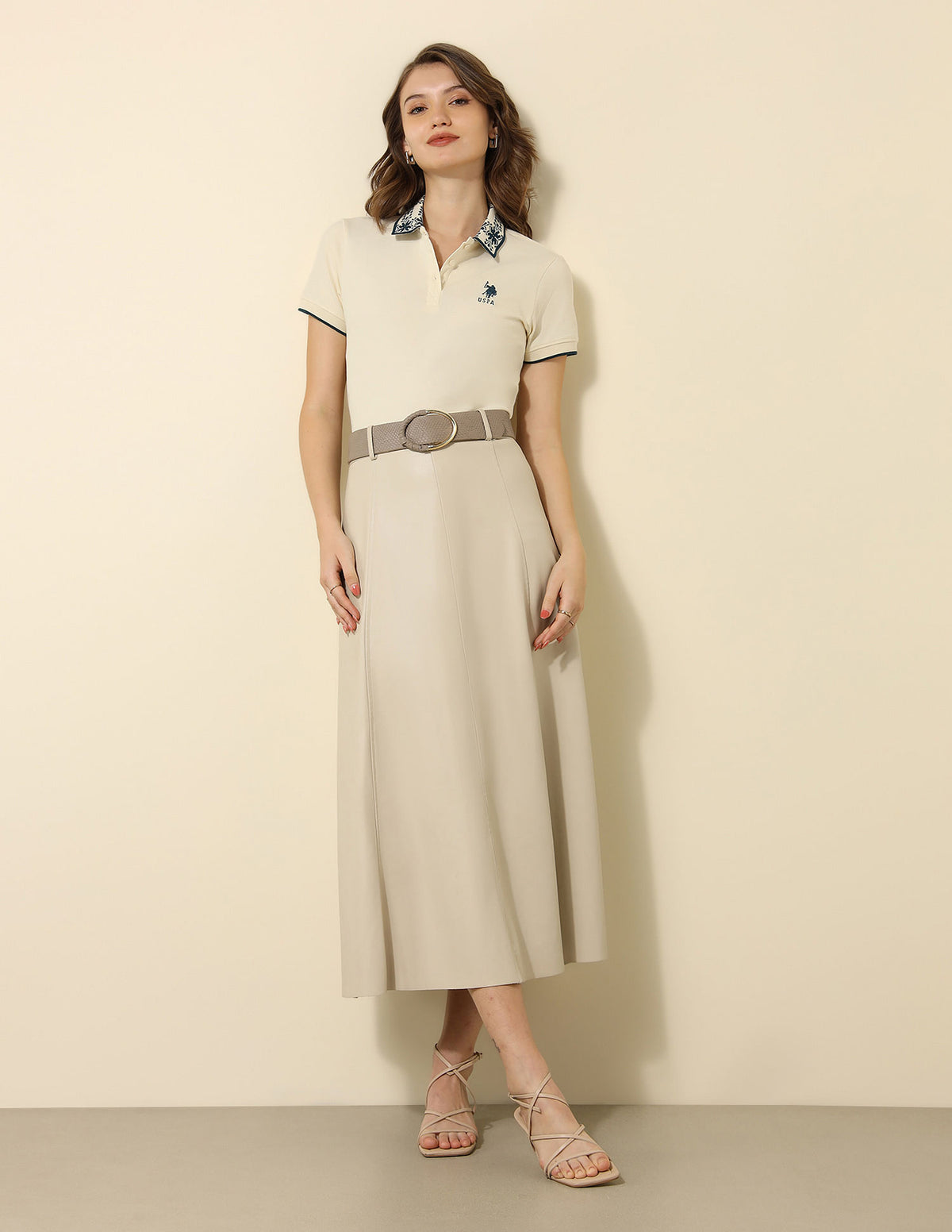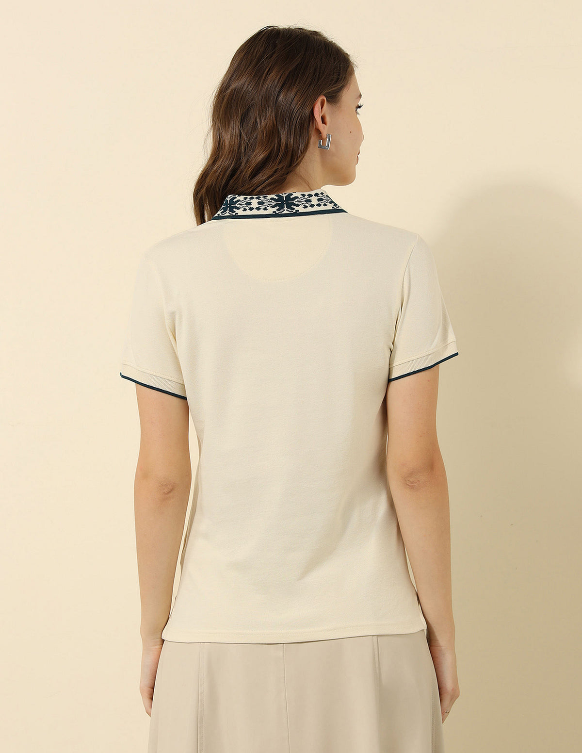 | Polo jacquard collar | Logo at chest | Short button placket | Short sleeves | Ribbed collar and sleeve hems | Vented hem | Solid pattern | Pique knit | Regular fit |