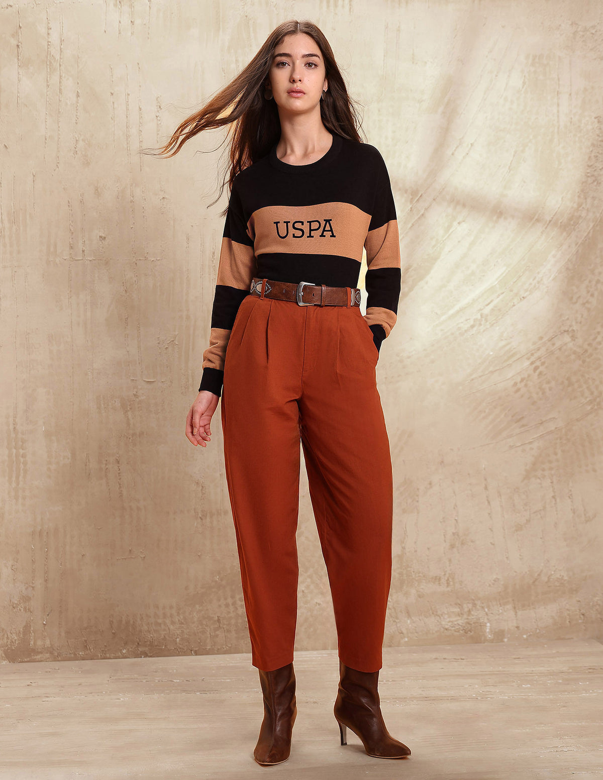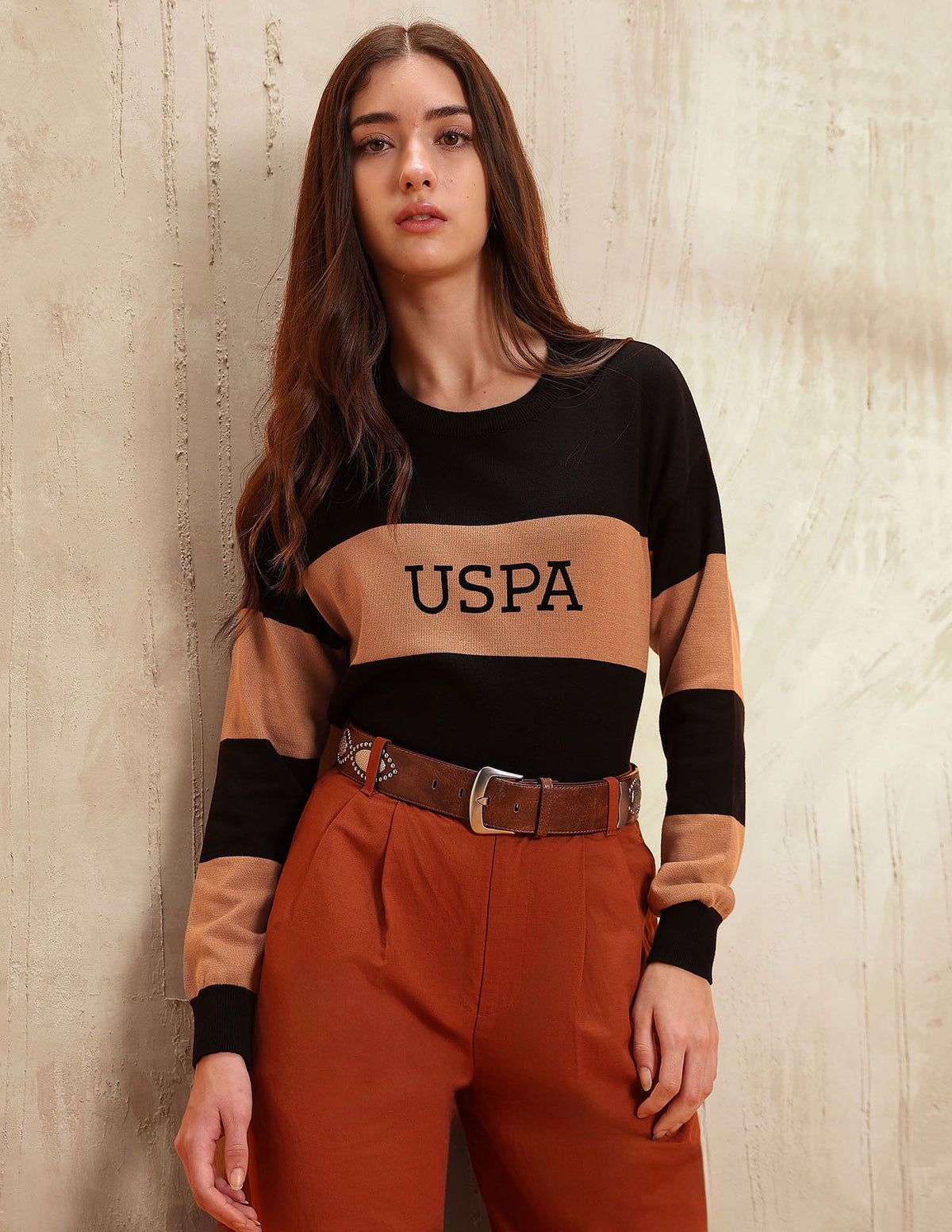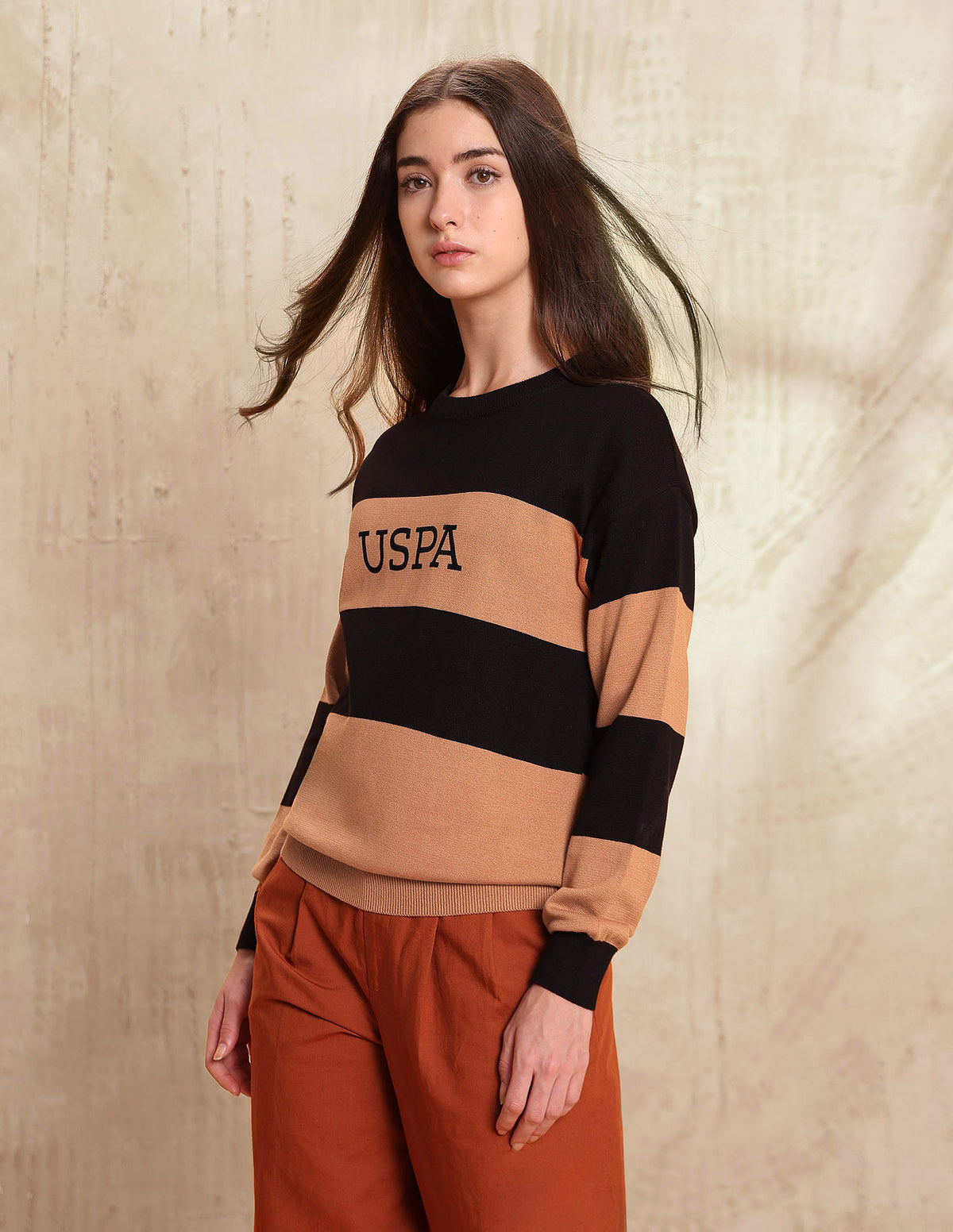 | Crew neck | Long sleeves | Ribbed neck, sleeve hems and hemline | Brand logo embroidered and horizontal striped pattern | Knitted | Relaxed fit |