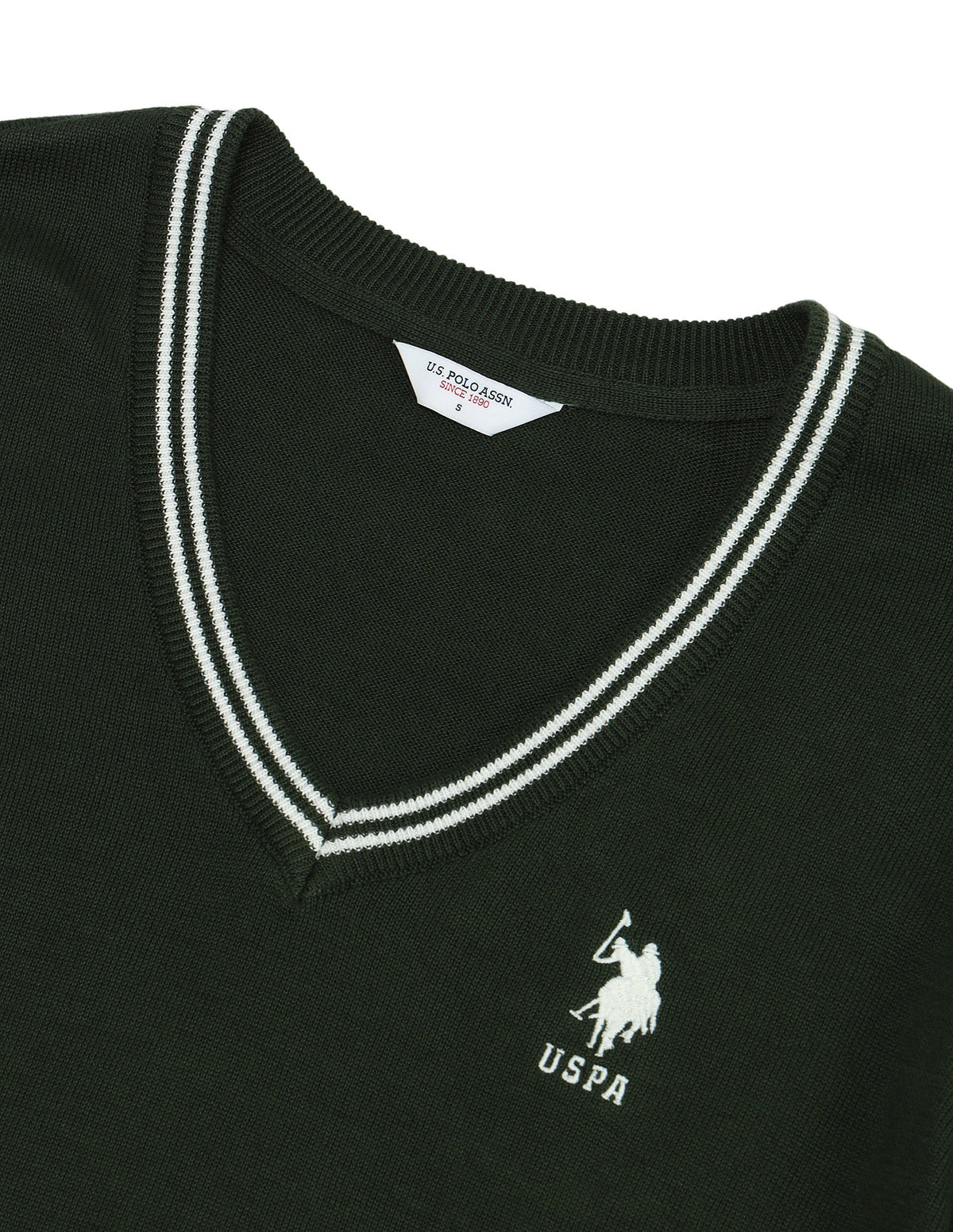 | Tipped V-neck | Logo at chest | Long sleeves | Ribbed neck, sleeve hems and hemline | Solid pattern | Knitted | Regular fit | Country Of Origin - India