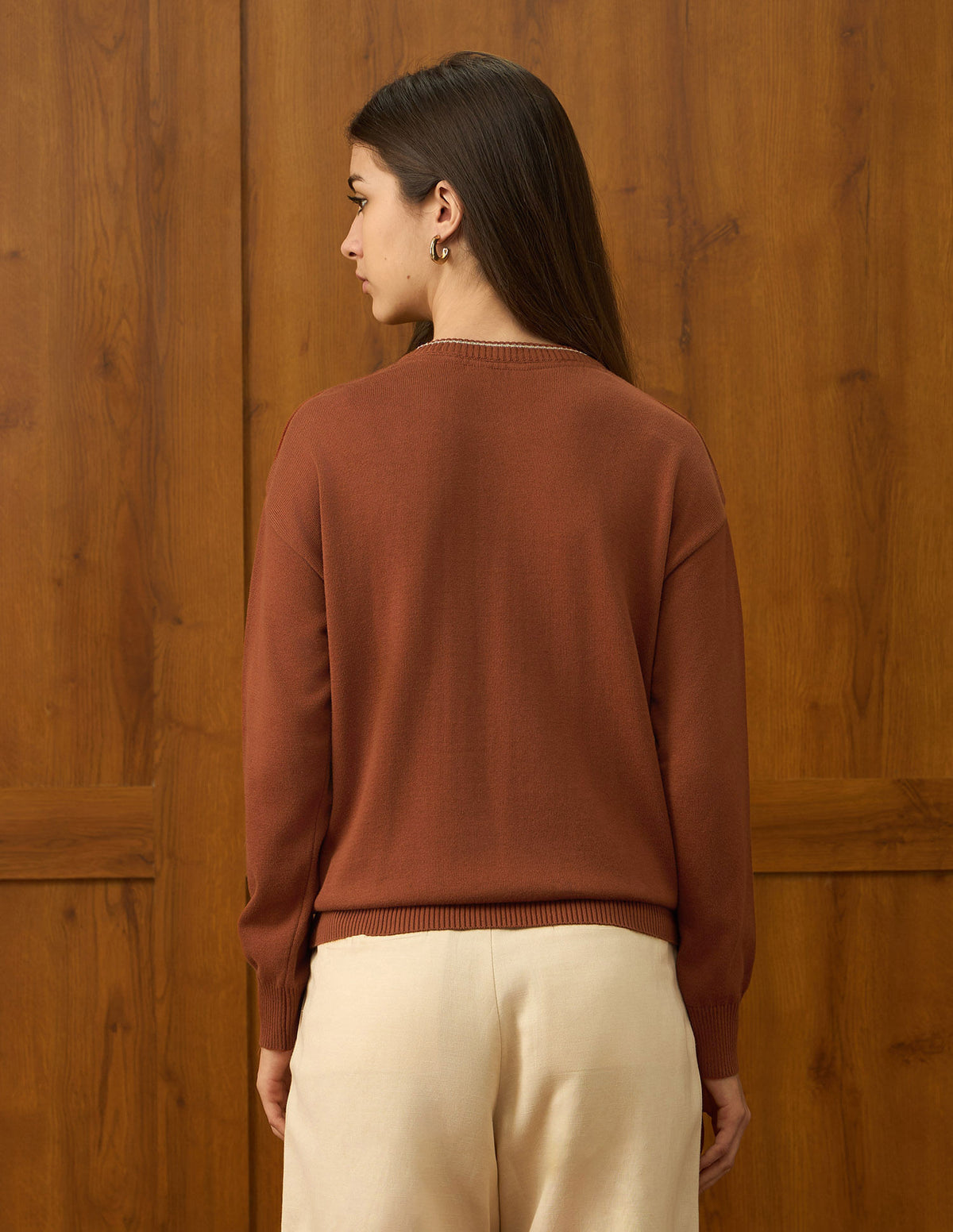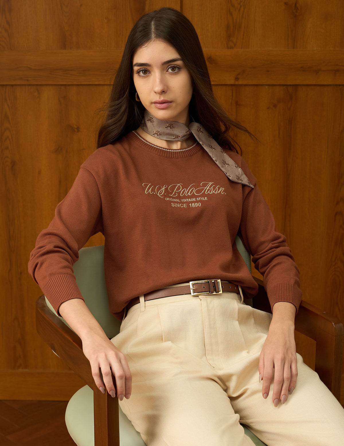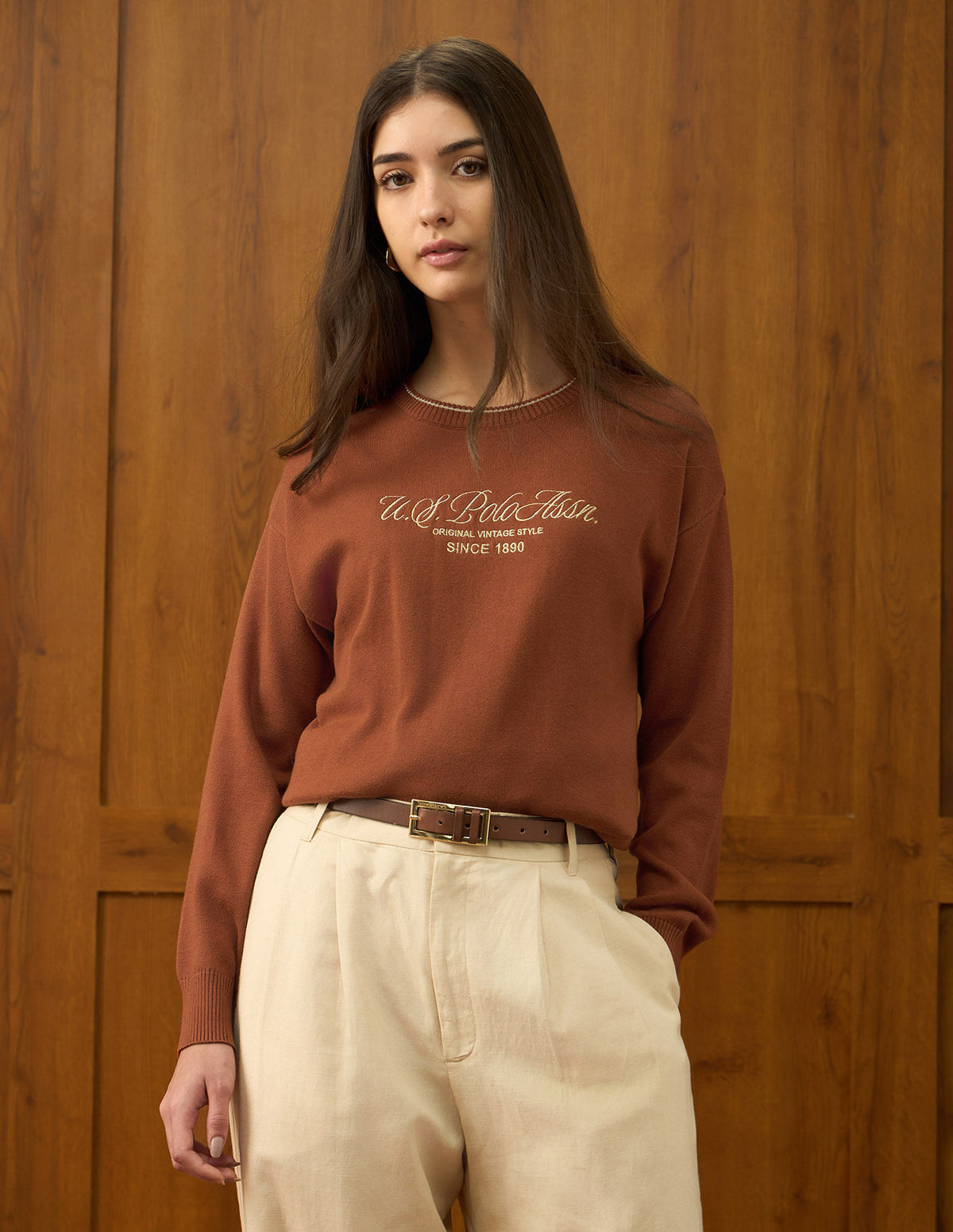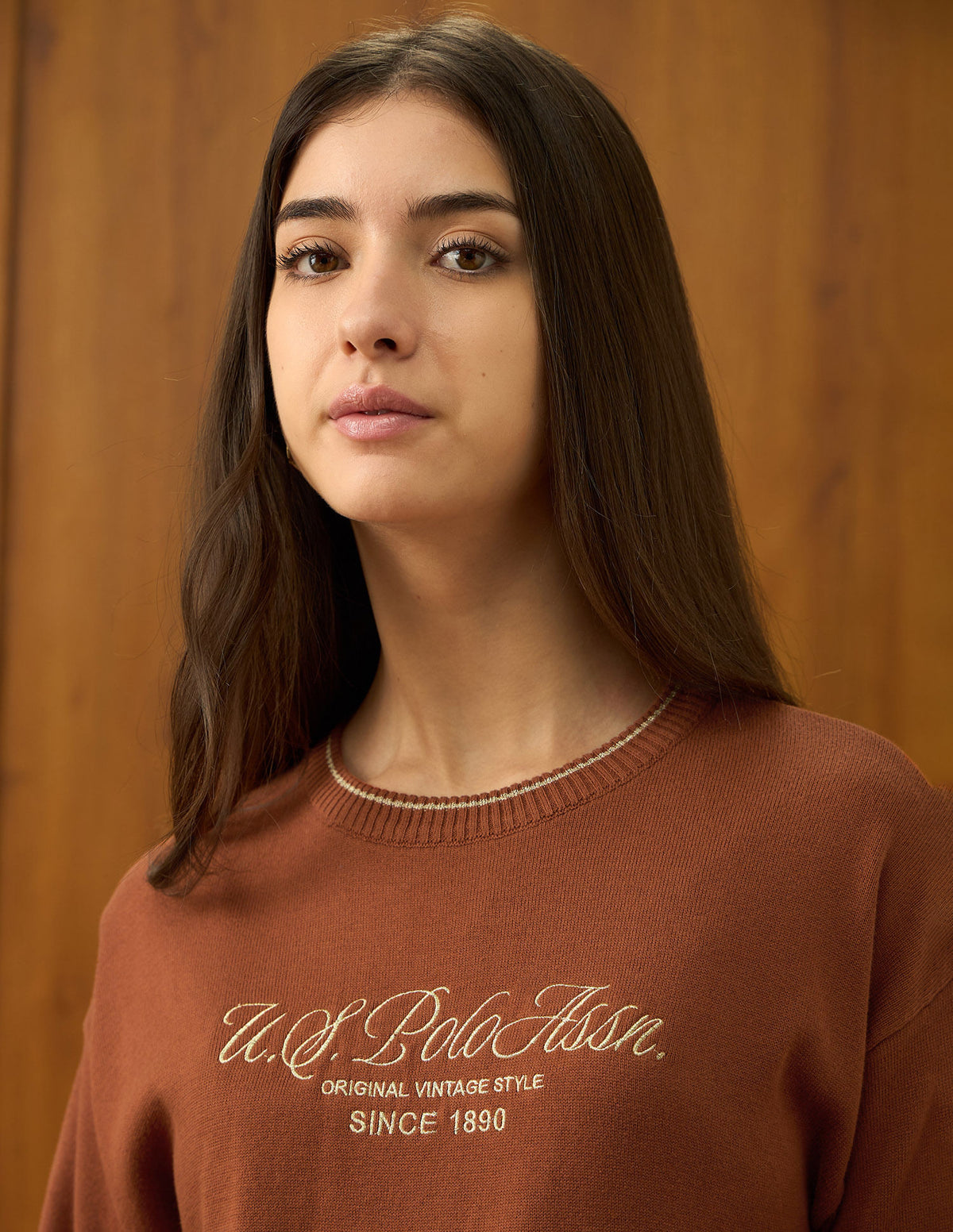 | Crew neck | Logo at chest | Long sleeves | Ribbed neck, sleeve hems and hemline | Brand printed pattern | Knitted | Regular fit |