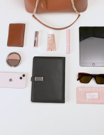 | Top handles | Metallic monogram accent at front | One main compartment with zipper closure | Solid pattern |