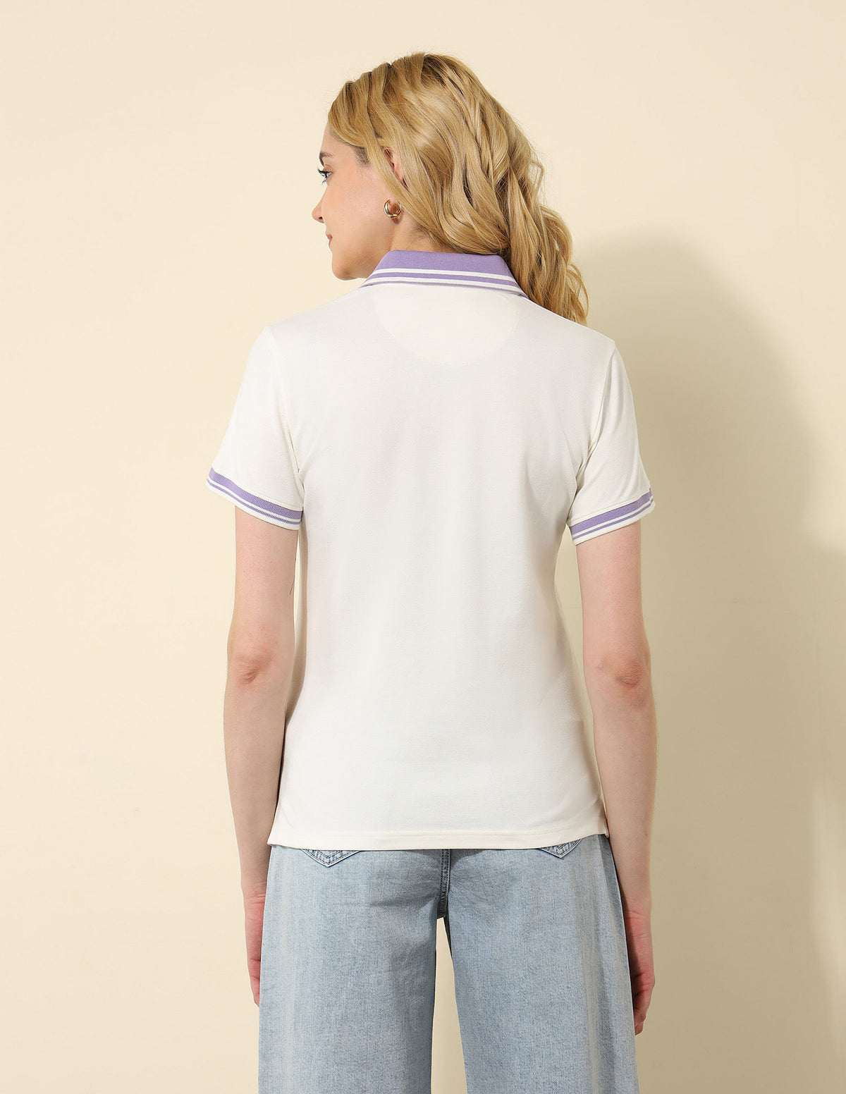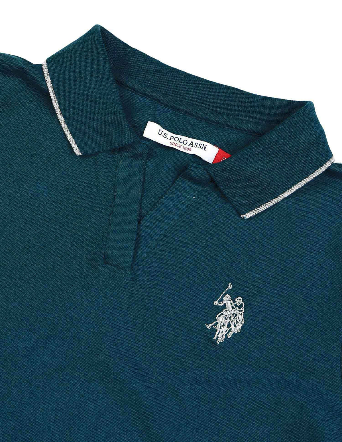 | Tipped polo collar | Logo at chest | Short button placket | Short sleeves | Ribbed collar and sleeve hems | Vented hem | Solid pattern | Pique knit | Regular fit |