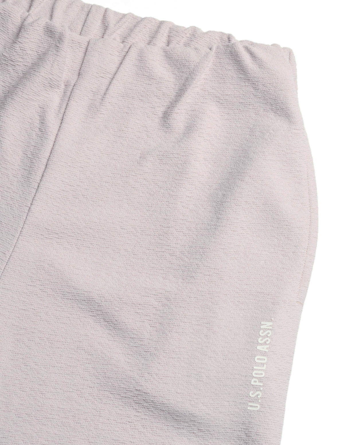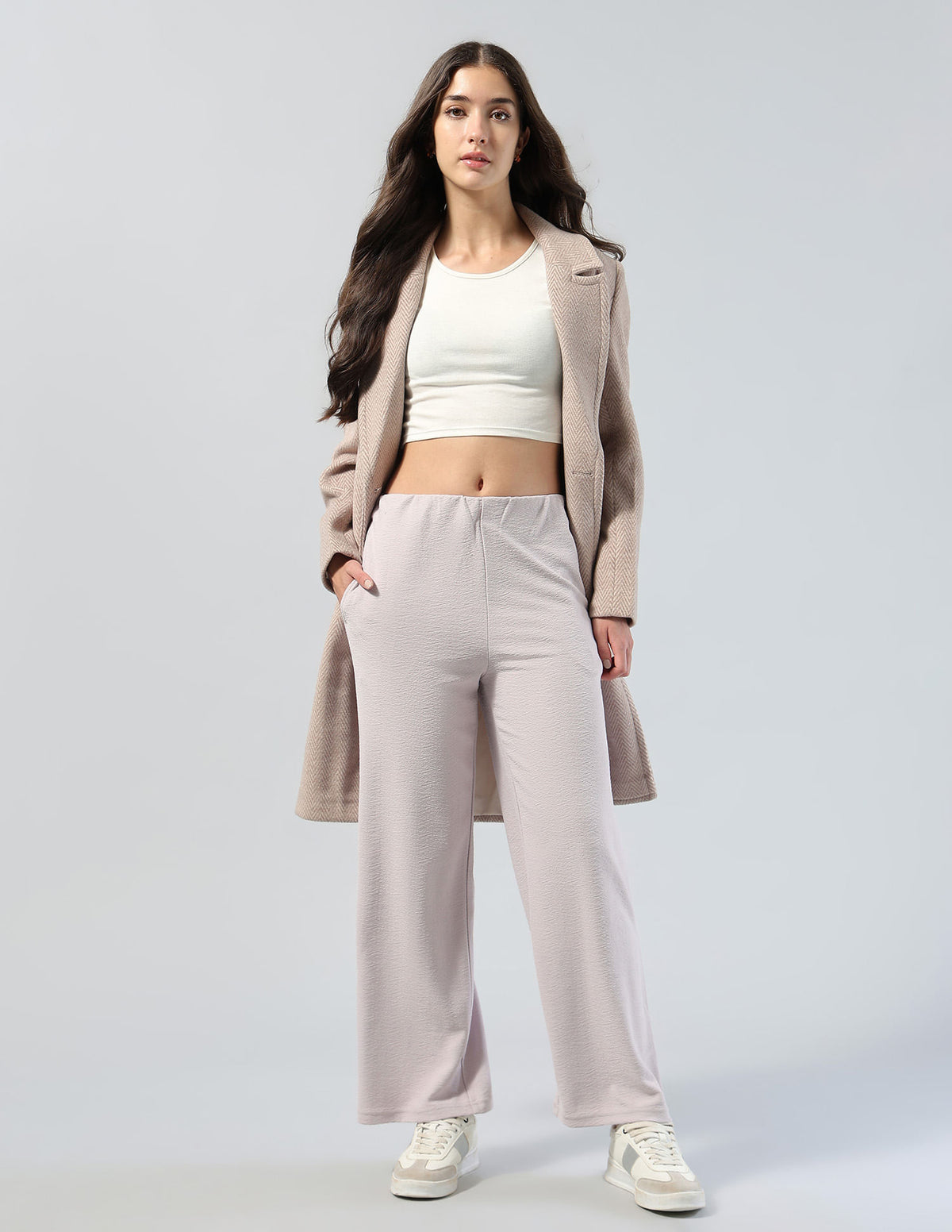 | Mid-rise waist | Slip-on closure | 2 pockets | Flat front | Textured pattern | Knitted weave | Straight fit |