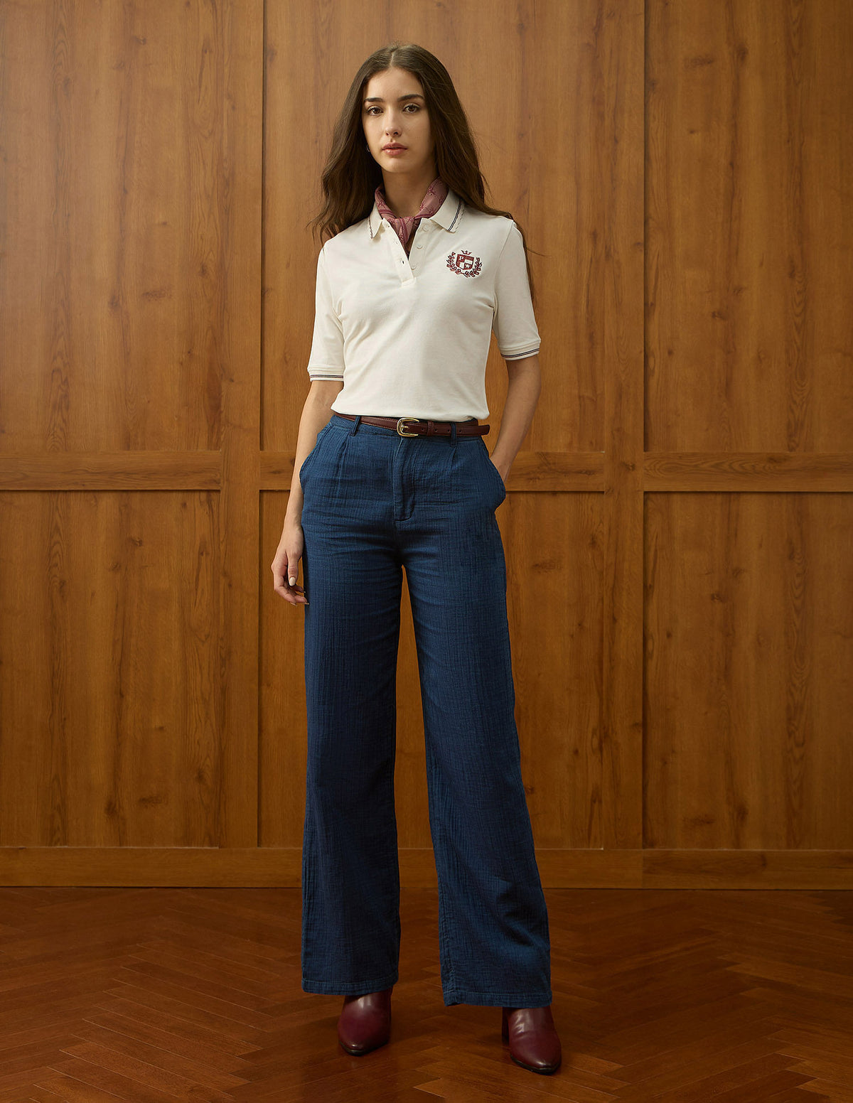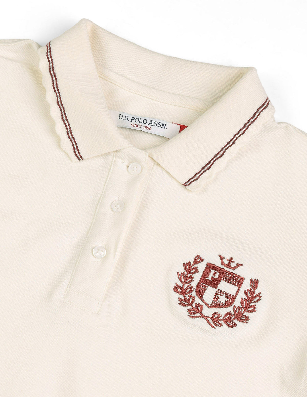 | Polo collar | Logo at chest | Short button placket | Short sleeves | Uneven vented hem | Solid pattern | Pique knit | Regular fit |