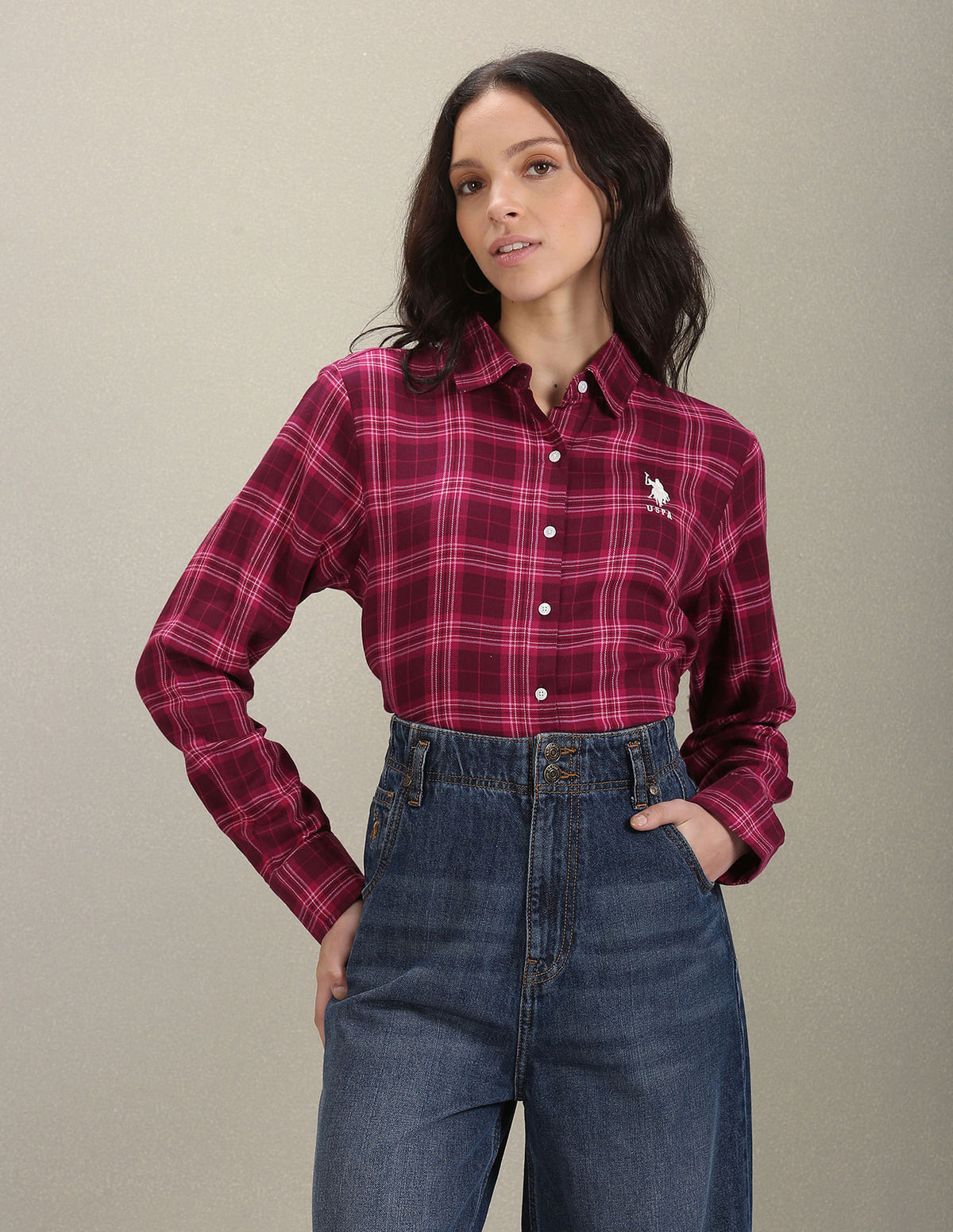 Spread Collar Tartan Check Shirt
